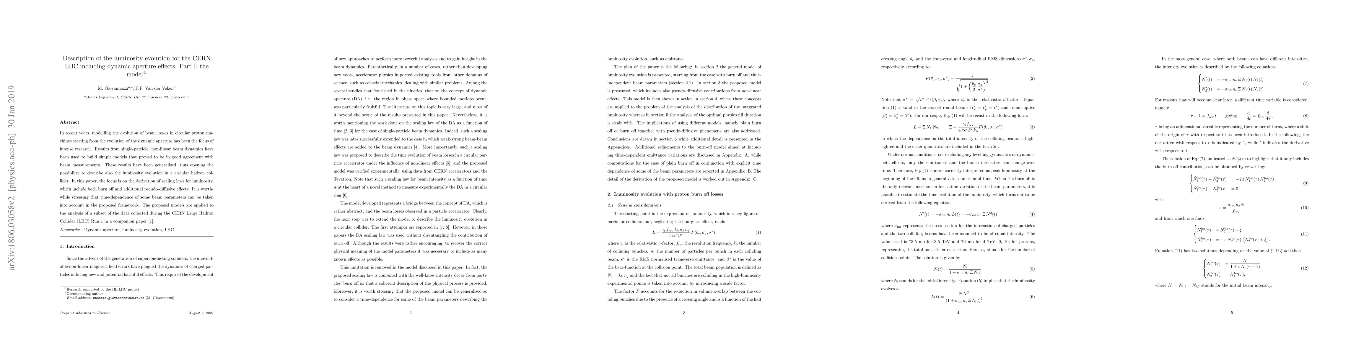 In recent years, modelling the evolution of beam losses in circular proton machines starting from the evolution of the dynamic aperture has been the focus of intense research. Results from single-particle, non-linear beam dynamics have been used to build simple models that proved to be in good agreement with beam measurements. These results have been generalised, thus opening the possibility to describe also the luminosity evolution in a circular hadron collider. In this paper, the focus is on the derivation of scaling laws for luminosity, which include both burn off and additional pseudo-diffusive effects. It is worthwhile stressing that time-dependence of some beam parameters can be taken into account in the proposed framework. The proposed models are applied to the analysis of a subset of the data collected during the CERN Large Hadron Collider (LHC) Run~1 in a companion paper (Part II).