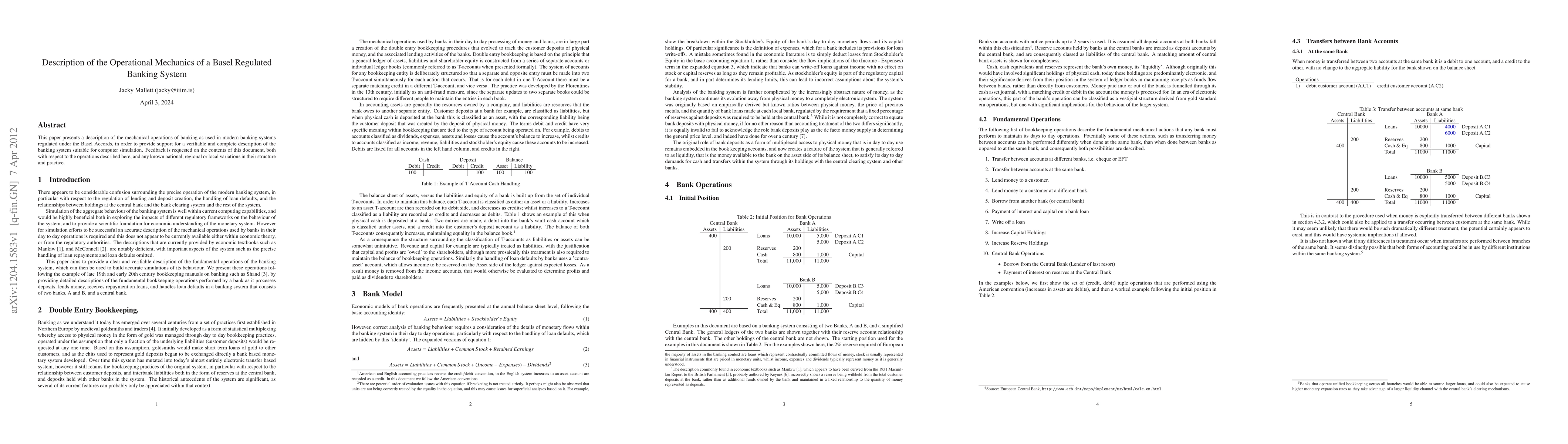 This paper presents a description of the mechanical operations of banking as used in modern banking systems regulated under the Basel Accords, in order to provide support for a verifiable and complete description of the banking system suitable for computer simulation. Feedback is requested on the contents of this document, both with respect to the operations described here, and any known national, regional or local variations in their structure and practice.
