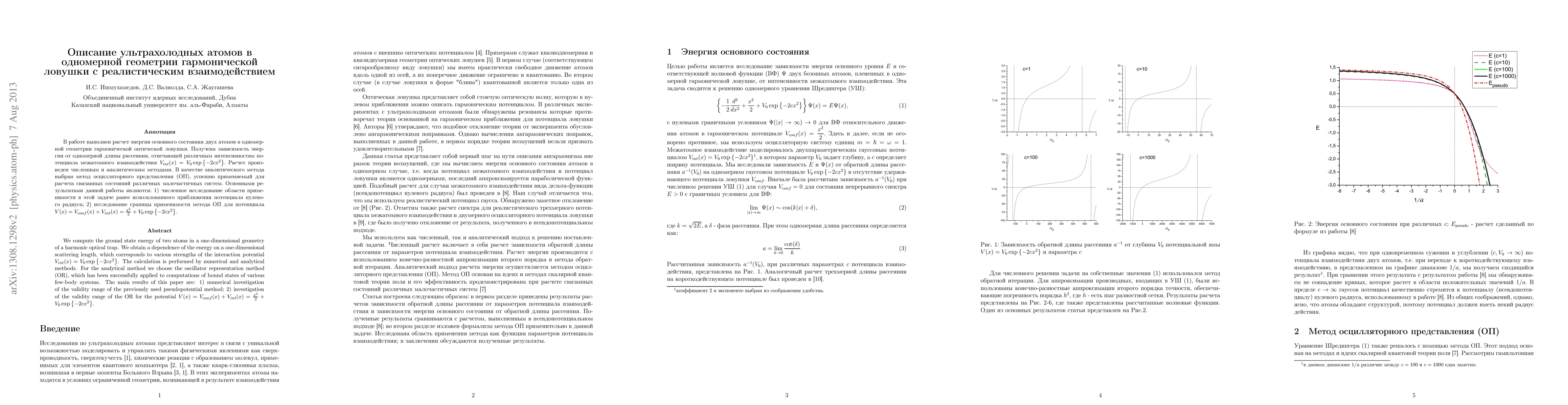 Researchers calculated the ground state energy of two ultracold atoms in a one-dimensional harmonic trap with varying interaction strengths, using numerical and analytical methods to explore the validity range of existing pseudopotential and oscillator representation methods.
