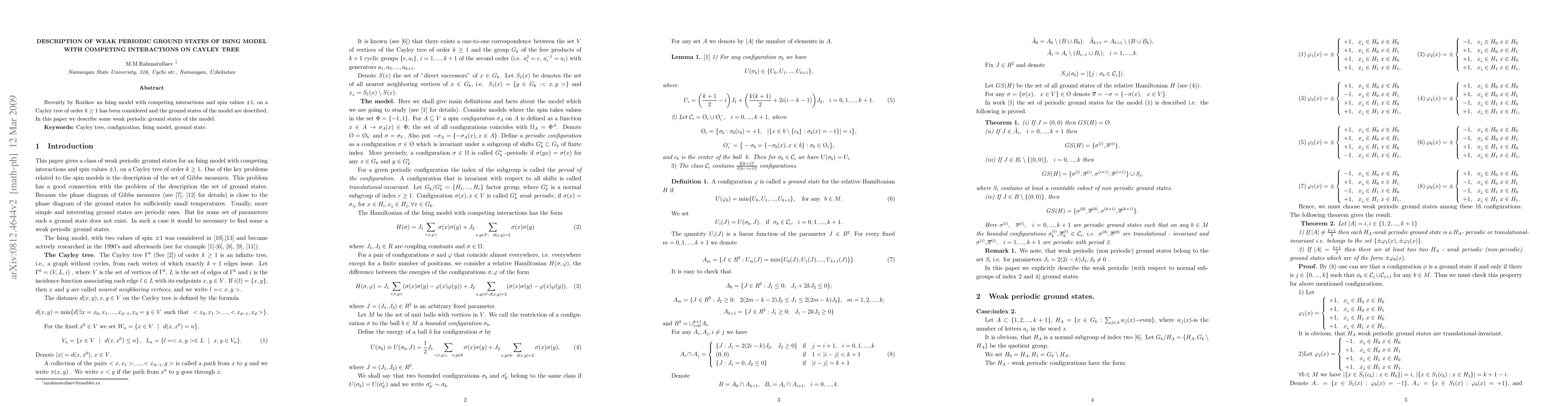 Summary: This paper investigates the Ising model on a Cayley tree with competing interactions, focusing on the description of weak periodic ground states, building on Rozikov's prior work on the model's ground states.