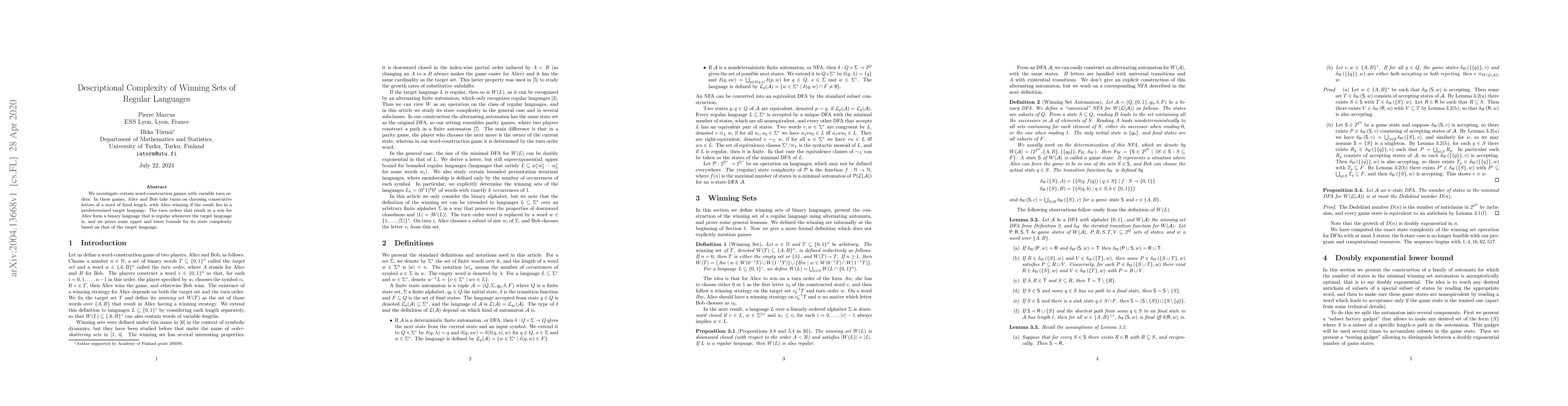 We investigate certain word-construction games with variable turn orders. In these games, Alice and Bob take turns on choosing consecutive letters of a word of fixed length, with Alice winning if the result lies in a predetermined target language. The turn orders that result in a win for Alice form a binary language that is regular whenever the target language is, and we prove some upper and lower bounds for its state complexity based on that of the target language.