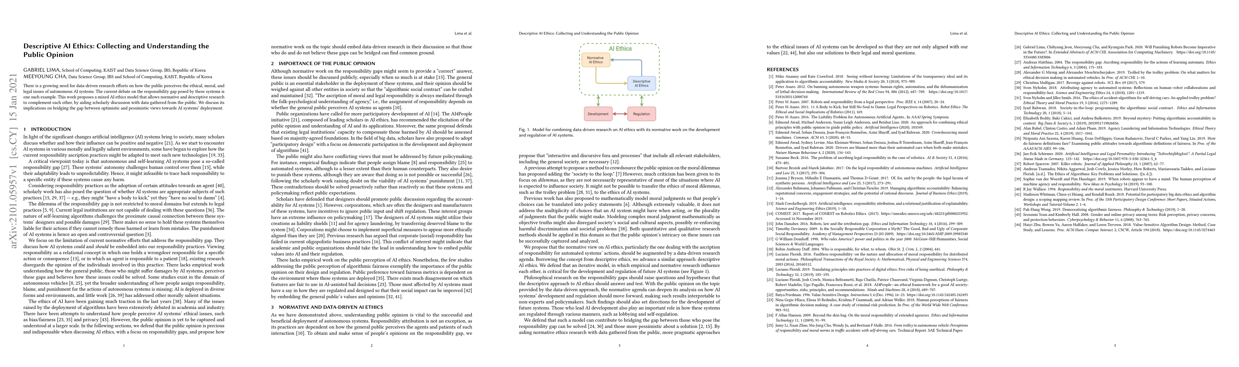 There is a growing need for data-driven research efforts on how the public perceives the ethical, moral, and legal issues of autonomous AI systems. The current debate on the responsibility gap posed by these systems is one such example. This work proposes a mixed AI ethics model that allows normative and descriptive research to complement each other, by aiding scholarly discussion with data gathered from the public. We discuss its implications on bridging the gap between optimistic and pessimistic views towards AI systems' deployment.