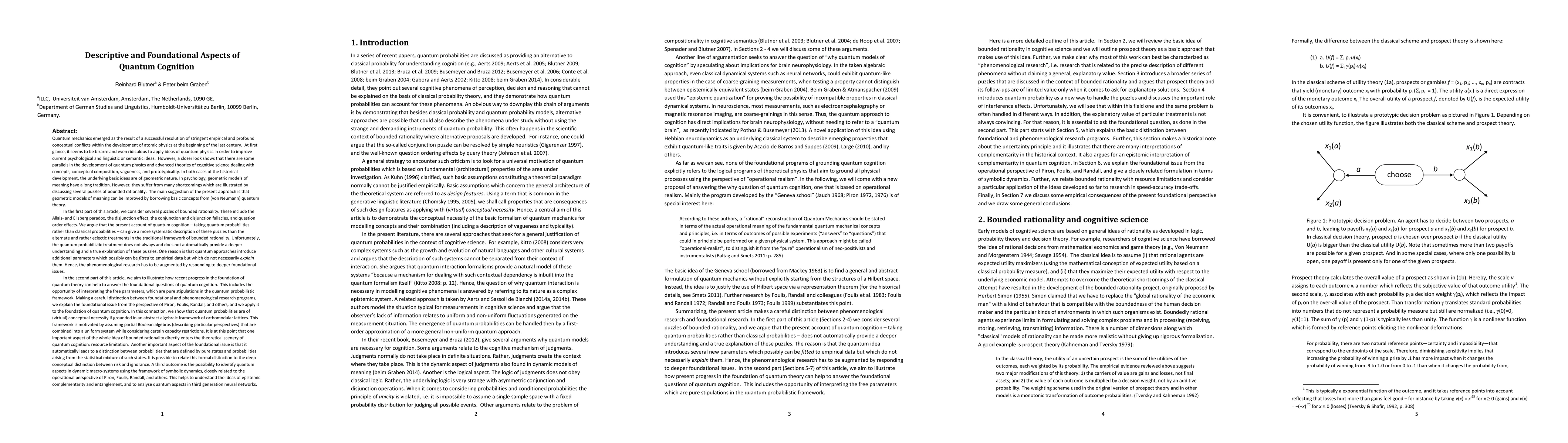 This paper explores the application of quantum mechanics to cognitive science, proposing a new framework for understanding bounded rationality that incorporates resource limitation and abstract algebraic structures. It argues that a quantum probabilistic approach can provide a more systematic description of certain puzzles in psychology and linguistics.