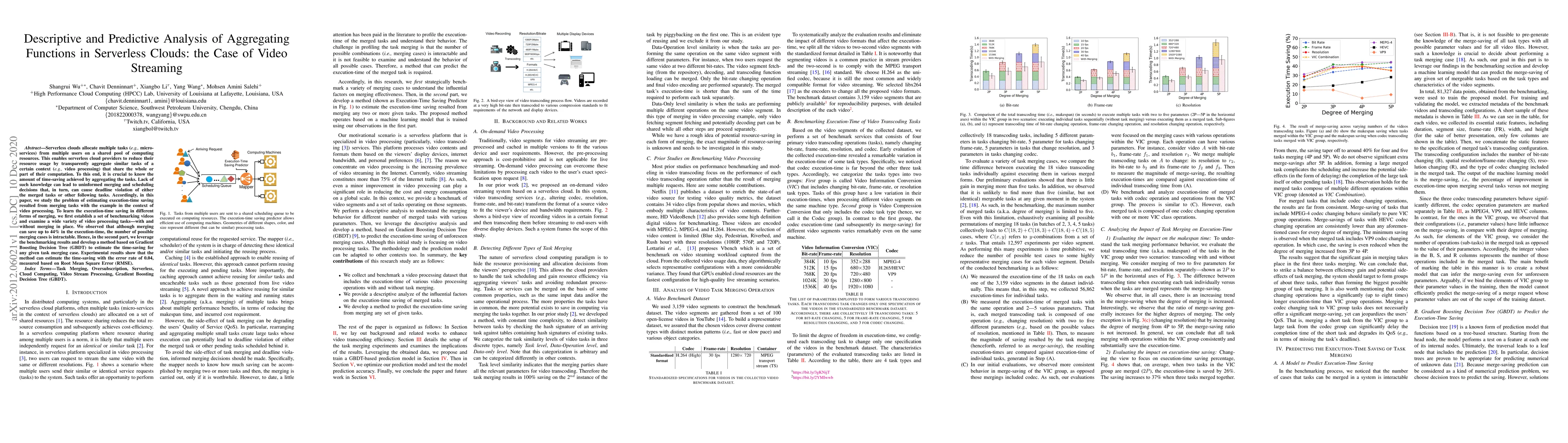 Serverless clouds allocate multiple tasks (e.g., micro-services) from multiple users on a shared pool of computing resources. This enables serverless cloud providers to reduce their resource usage by transparently aggregate similar tasks of a certain context (e.g., video processing) that share the whole or part of their computation. To this end, it is crucial to know the amount of time-saving achieved by aggregating the tasks. Lack of such knowledge can lead to uninformed merging and scheduling decisions that, in turn, can cause deadline violation of either the merged tasks or other following tasks. Accordingly, in this paper, we study the problem of estimating execution-time saving resulted from merging tasks with the example in the context of video processing. To learn the execution-time saving in different forms of merging, we first establish a set of benchmarking videos and examine a wide variety of video processing tasks -- with and without merging in place. We observed that although merging can save up to 44% in the execution-time, the number of possible merging cases is intractable. Hence, in the second part, we leverage the benchmarking results and develop a method based on Gradient Boosting Decision Tree (GBDT) to estimate the time-saving for any given task merging case. Experimental results show that the method can estimate the time-saving with the error rate of 0.04, measured based on Root Mean Square Error (RMSE).