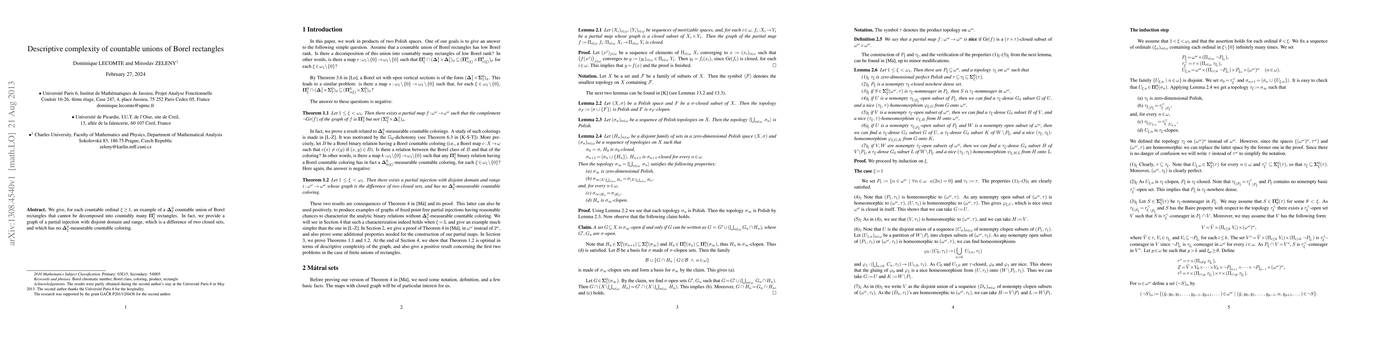 Two-line summary: This paper presents examples of ${\bf\Delta}^0_2$ countable unions of Borel rectangles that resist decomposition into countably many ${\bf\Pi}^0_\xi$ rectangles for any countable ordinal $\xi \geq 1$. It also introduces a graph illustrating a partial injection with disjoint domain and range, which lacks a ${\bf\Delta}^0_\xi$-measurable countable coloring.