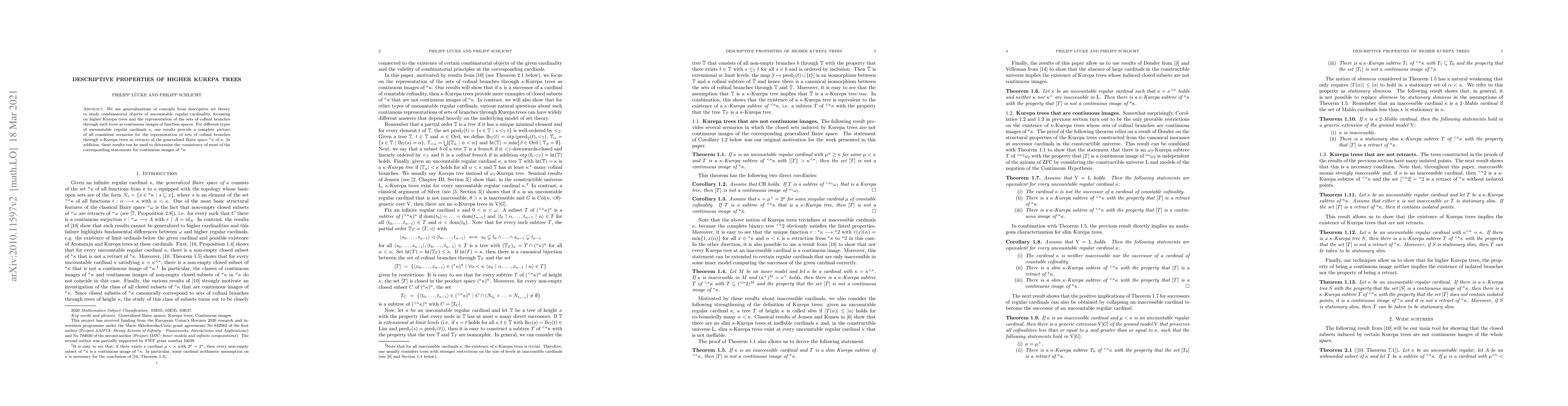 This paper explores higher Kurepa trees using descriptive set theory, providing a comprehensive view of how sets of cofinal branches can be represented via these trees as continuous images of function spaces. It determines the consistency of these representations for various uncountable regular cardinals.