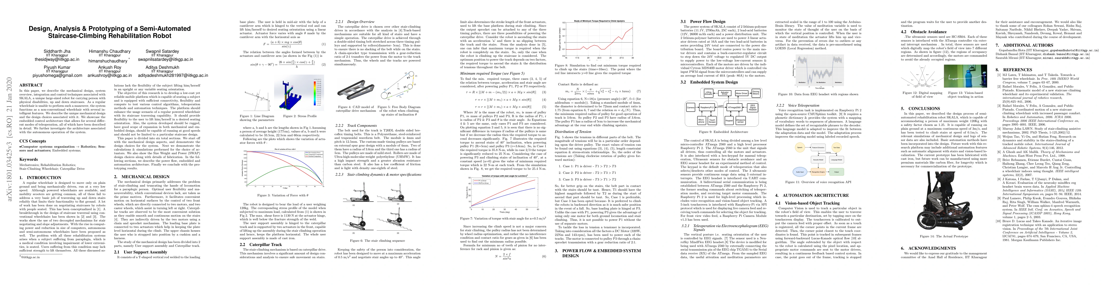 This paper details the design, control, and prototyping of SKALA, a large-sized semi-automated rehabilitation robot for assisting individuals with physical disabilities in climbing staircases. It explores the mechanical design, control architecture, and various teleoperation modes, alongside autonomous operation capabilities.
