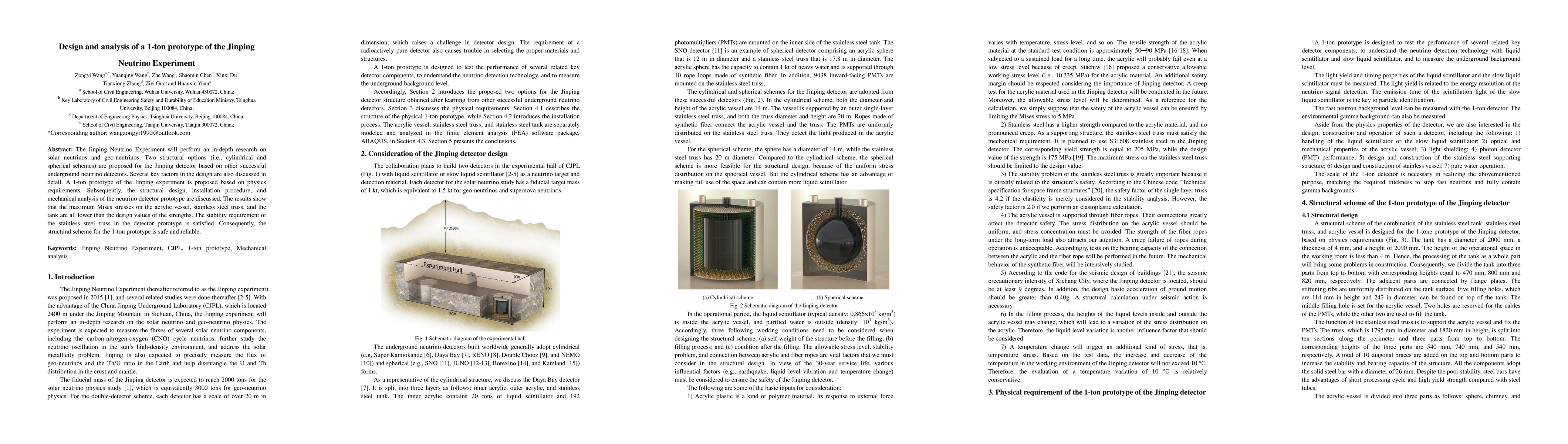The Jinping Neutrino Experiment proposes a 1-ton prototype for studying solar and geo-neutrinos, comparing cylindrical and spherical designs. The prototype's structural design and mechanical analysis confirm its safety and reliability, with stresses below design strength limits.