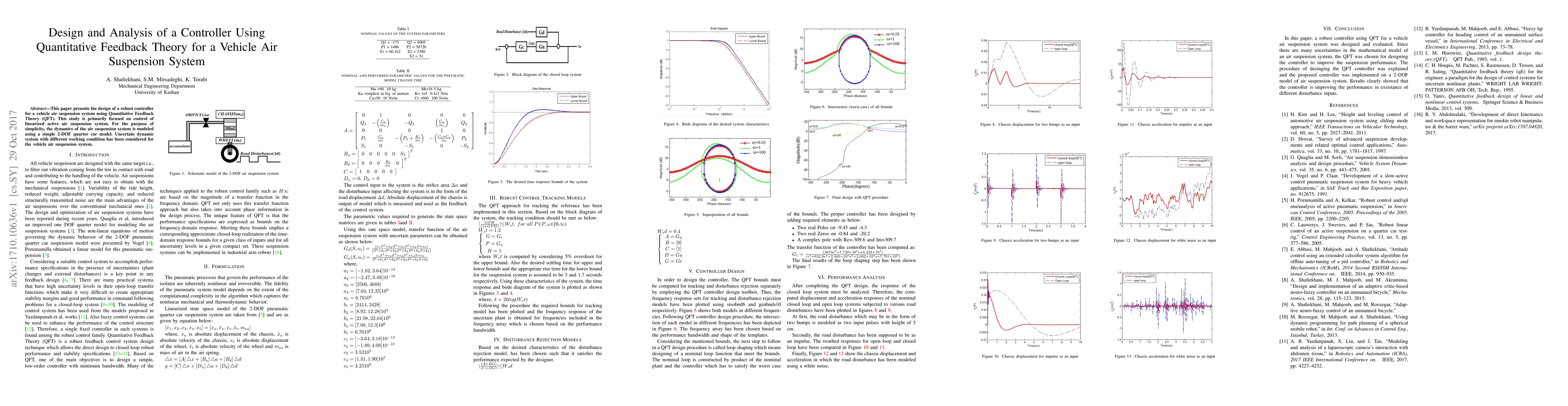 This paper designs a robust controller for a vehicle air suspension system using Quantitative Feedback Theory (QFT), focusing on a linearized 2-DOF quarter car model to manage uncertainties across different working conditions. The study aims to enhance the system's performance and stability.
