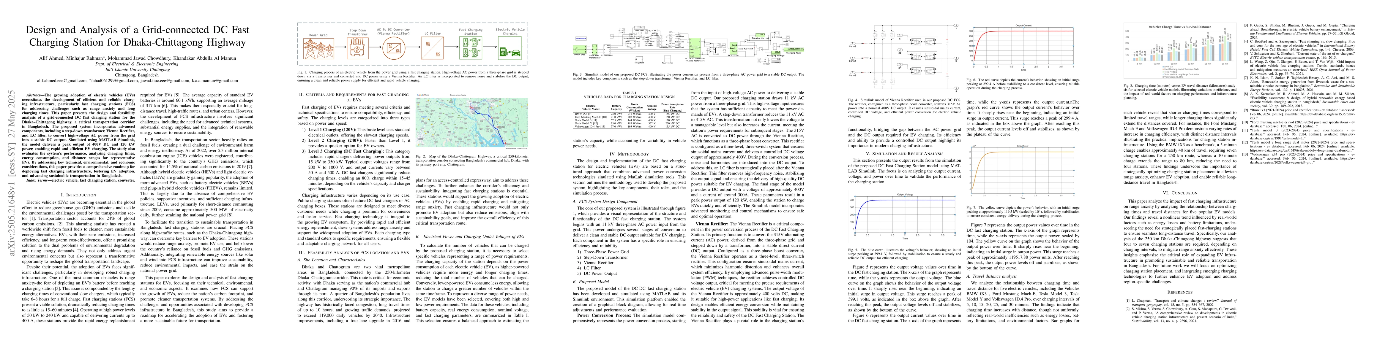 The paper presents a novel design of a grid-connected DC fast charging station, incorporating advanced components for efficient power conversion from high-voltage AC to stable DC output.