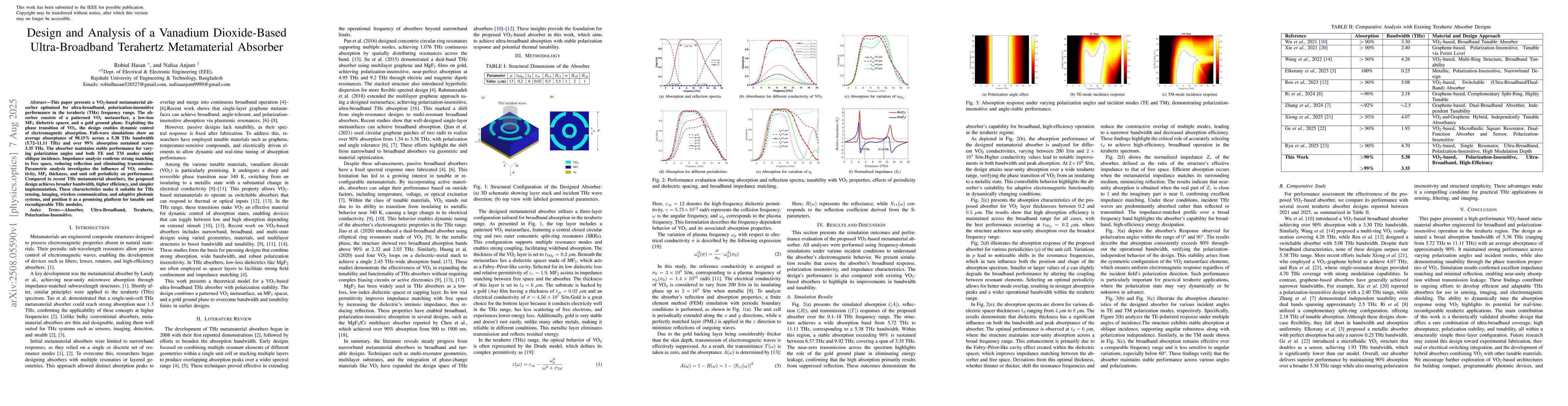 This paper presents a VO2-based metamaterial absorber optimized for ultra-broadband, polarization-insensitive performance in the terahertz (THz) frequency range. The absorber consists of a patterned VO2 metasurface, a low-loss MF2 dielectric spacer, and a gold ground plane. Exploiting the phase transition of VO2, the design enables dynamic control of electromagnetic absorption. Full-wave simulations show an average absorptance of 98.15% across a 5.38THz bandwidth (5.72-11.11THz) and over 99% absorption sustained across 3.35THz. The absorber maintains stable performance for varying polarization angles and both TE and TM modes under oblique incidence. Impedance analysis confirms strong matching to free space, reducing reflection and eliminating transmission. Parametric analysis investigates the influence of VO2 conductivity, MF2 thickness, and unit cell periodicity on performance. Compared to recent THz metamaterial absorbers, the proposed design achieves broader bandwidth, higher efficiency, and simpler implementation. These characteristics make it suitable for THz sensing, imaging, wireless communication, and adaptive photonic systems, and position it as a promising platform for tunable and reconfigurable THz modules.