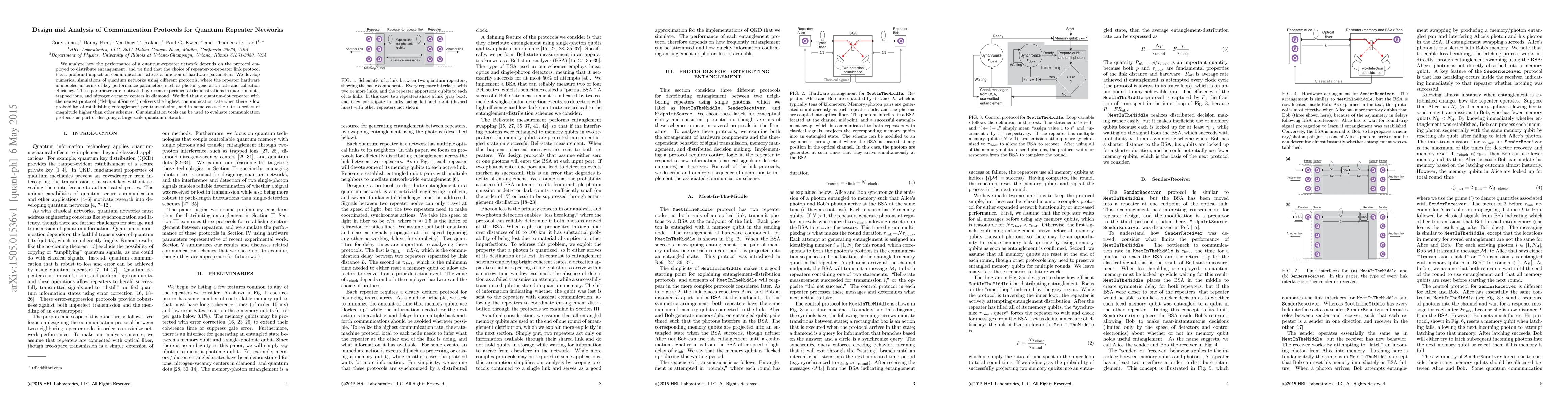 The research employs numerical simulations to analyze the performance of quantum repeater network protocols, focusing on the impact of repeater-to-repeater link protocols on communication rates. The simulations model repeater hardware using key performance parameters like photon generation rate and collection efficiency, based on recent experimental demonstrations in quantum dots, trapped ions, and nitrogen-vacancy centers in diamond.