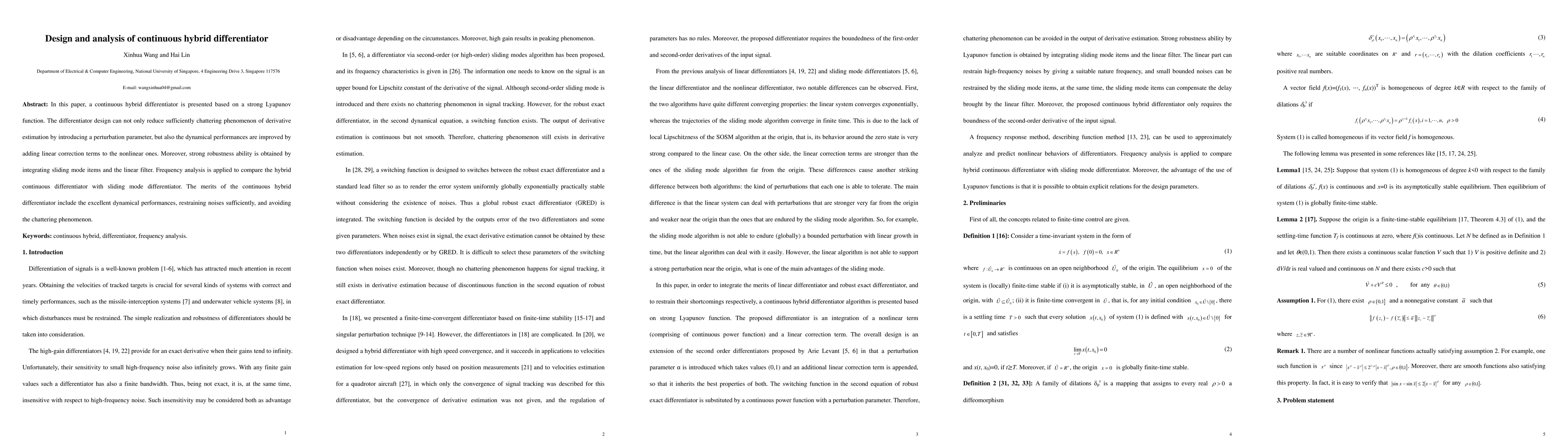 A continuous hybrid differentiator is designed with a strong Lyapunov function to improve dynamical performance and robustness while reducing chattering phenomenon and noise effects.