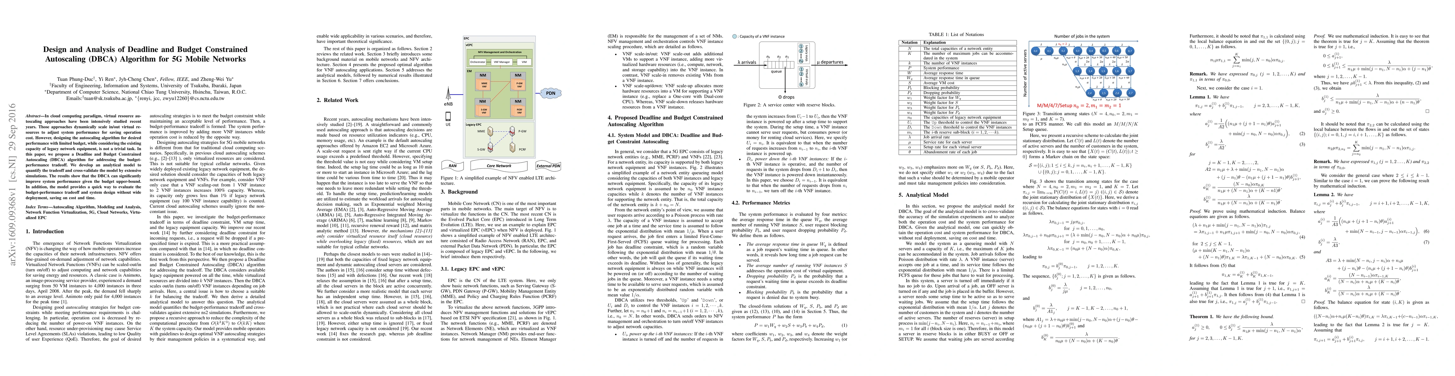 The paper proposes a Deadline and Budget Constrained Autoscaling (DBCA) algorithm for 5G mobile networks, addressing the challenge of balancing performance and cost under budget limits. The study develops an analytical model to evaluate the budget-performance tradeoff, validated through simulations, showing that DBCA can enhance system performance within budget constraints.