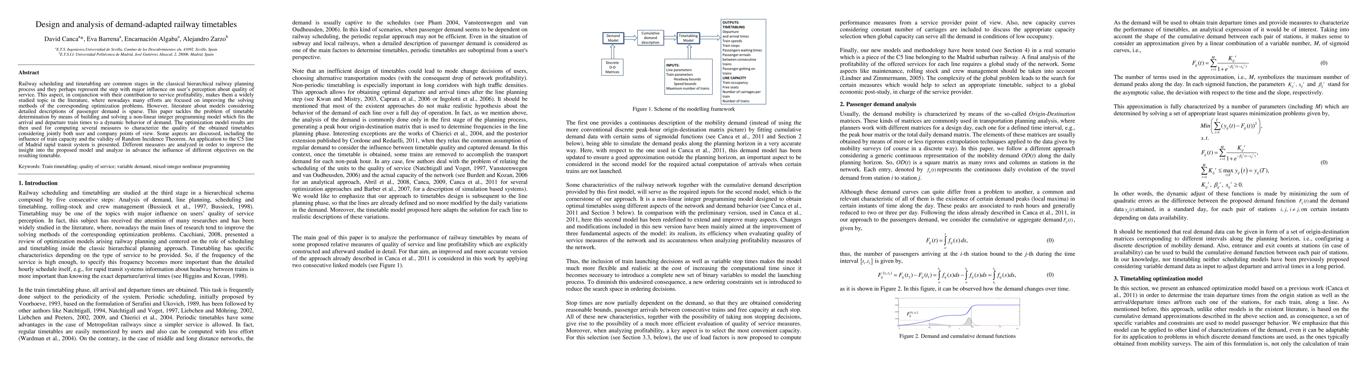 This paper develops a non-linear integer programming model to create demand-adapted railway timetables, optimizing train arrival and departure times to match dynamic passenger demand. The study evaluates the resulting timetables based on user satisfaction and service profitability, applying the model to the C5 line of Madrid's rapid transit system.