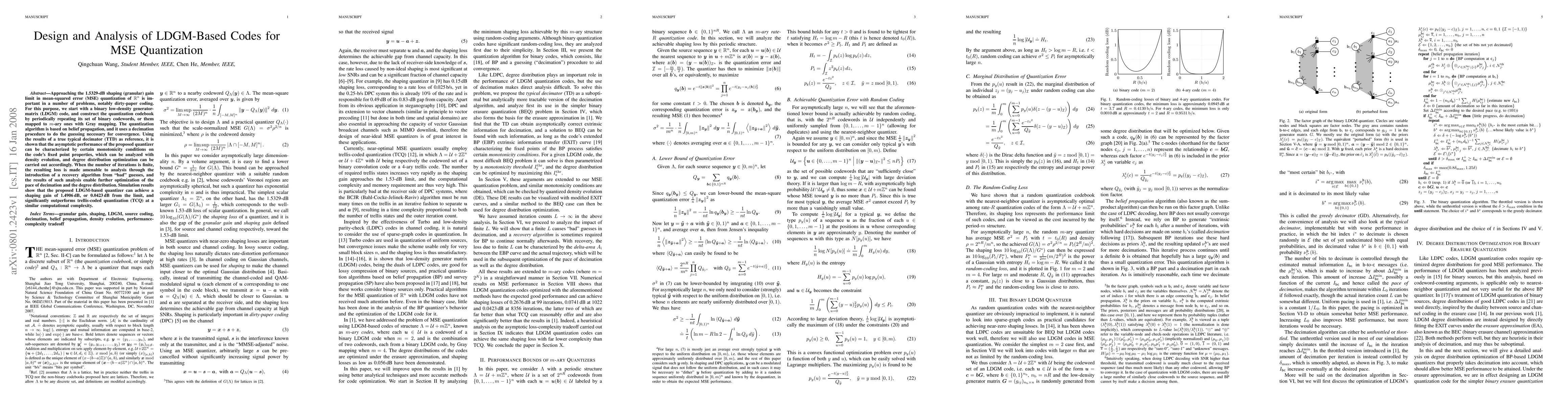 Approaching the 1.5329-dB shaping (granular) gain limit in mean-squared error (MSE) quantization of R^n is important in a number of problems, notably dirty-paper coding. For this purpose, we start with a binary low-density generator-matrix (LDGM) code, and construct the quantization codebook by periodically repeating its set of binary codewords, or them mapped to m-ary ones with Gray mapping. The quantization algorithm is based on belief propagation, and it uses a decimation procedure to do the guessing necessary for convergence. Using the results of a true typical decimator (TTD) as reference, it is shown that the asymptotic performance of the proposed quantizer can be characterized by certain monotonicity conditions on the code's fixed point properties, which can be analyzed with density evolution, and degree distribution optimization can be carried out accordingly. When the number of iterations is finite, the resulting loss is made amenable to analysis through the introduction of a recovery algorithm from ``bad'' guesses, and the results of such analysis enable further optimization of the pace of decimation and the degree distribution. Simulation results show that the proposed LDGM-based quantizer can achieve a shaping gain of 1.4906 dB, or 0.0423 dB from the limit, and significantly outperforms trellis-coded quantization (TCQ) at a similar computational complexity.