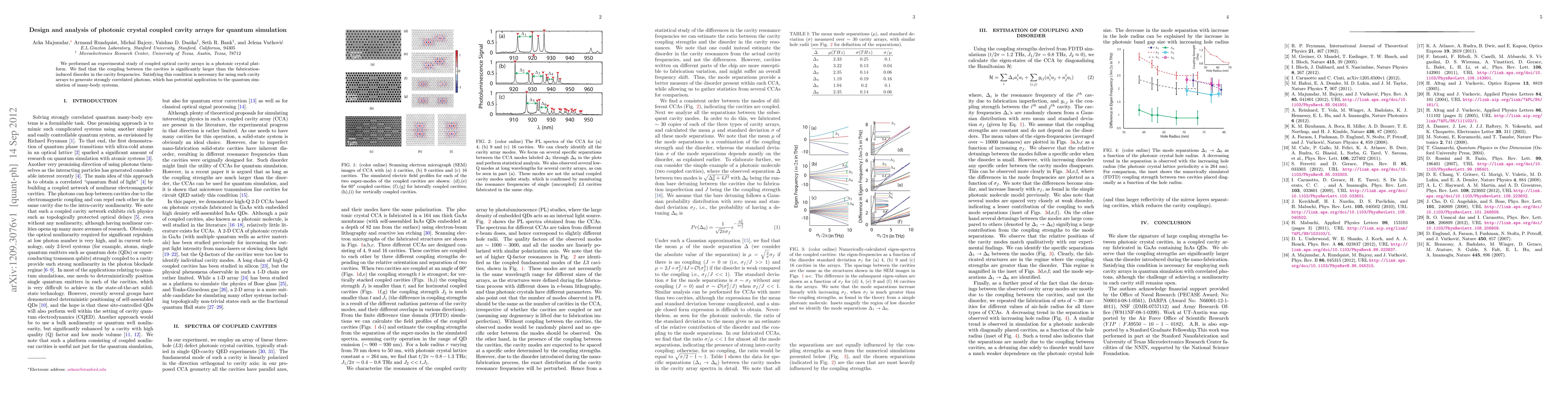 This paper investigates coupled optical cavity arrays within a photonic crystal, demonstrating that cavity coupling exceeds fabrication-induced frequency disorder, essential for generating strongly correlated photons and enabling quantum simulation of many-body systems.