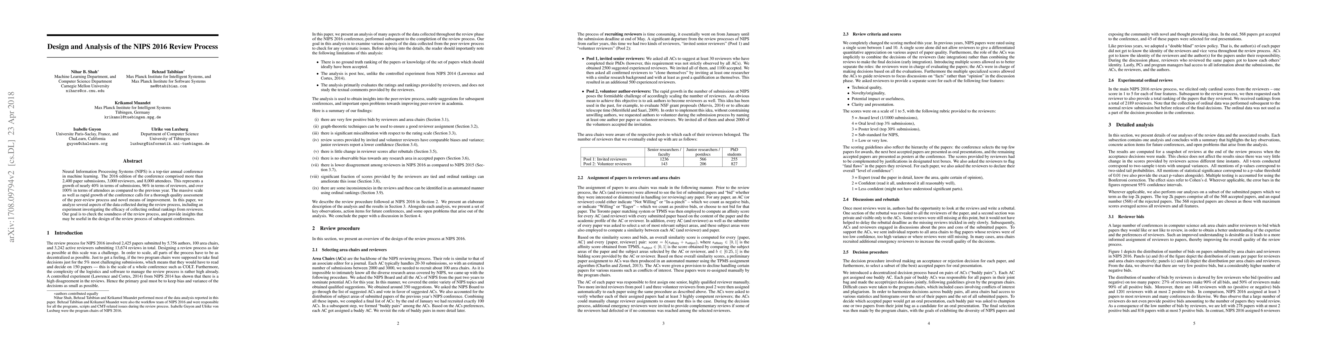 A 2016 NIPS conference review process analysis found improvements in reviewer diversity and paper quality through novel ordinal ranking methods. The study aimed to optimize the peer-review process for future conferences.
