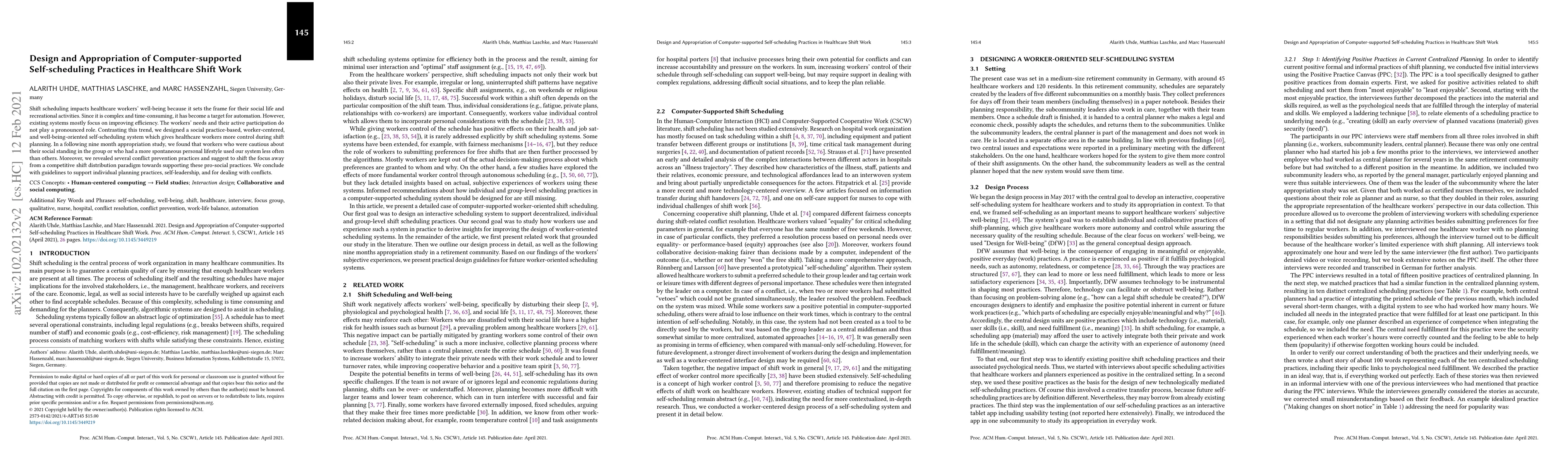 A new self-scheduling system for healthcare workers prioritizes worker well-being and control over shift planning, but found that cautious or spontaneous workers used the system less often. The study suggests shifting focus to supporting pro-social practices and providing guidelines for individual planning and conflict resolution.