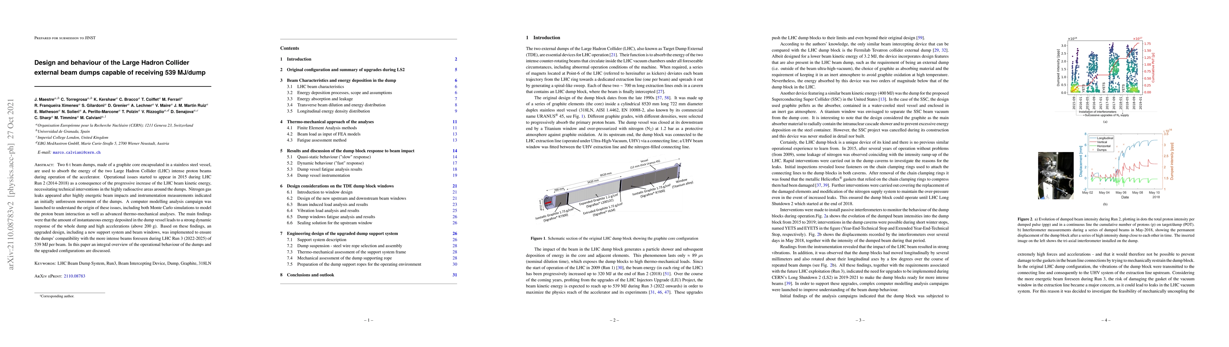 This paper discusses the design and operational issues of the Large Hadron Collider's external beam dumps, which absorb intense proton beams. An upgraded design was implemented to address dynamic responses and nitrogen gas leaks caused by increased beam energy, ensuring compatibility for the dumps' capacity of 539 MJ per beam.