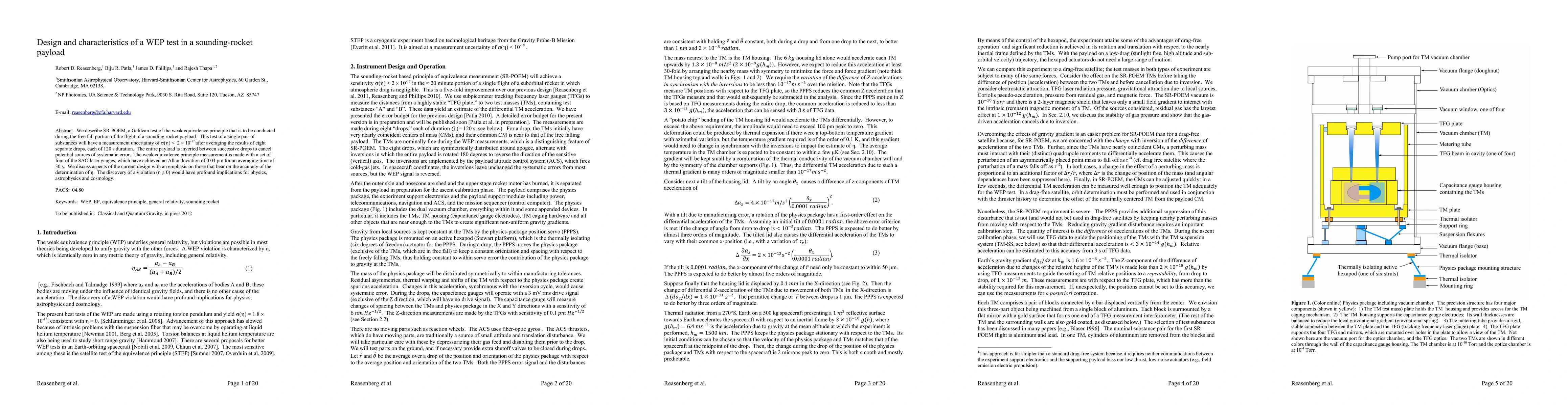 This paper details SR-POEM, a sounding-rocket payload designed to test the weak equivalence principle with high precision, aiming for a measurement uncertainty of < 2 x 10^-17. The payload uses laser gauges and multiple drops to minimize systematic errors and could reveal significant implications if the principle is violated.