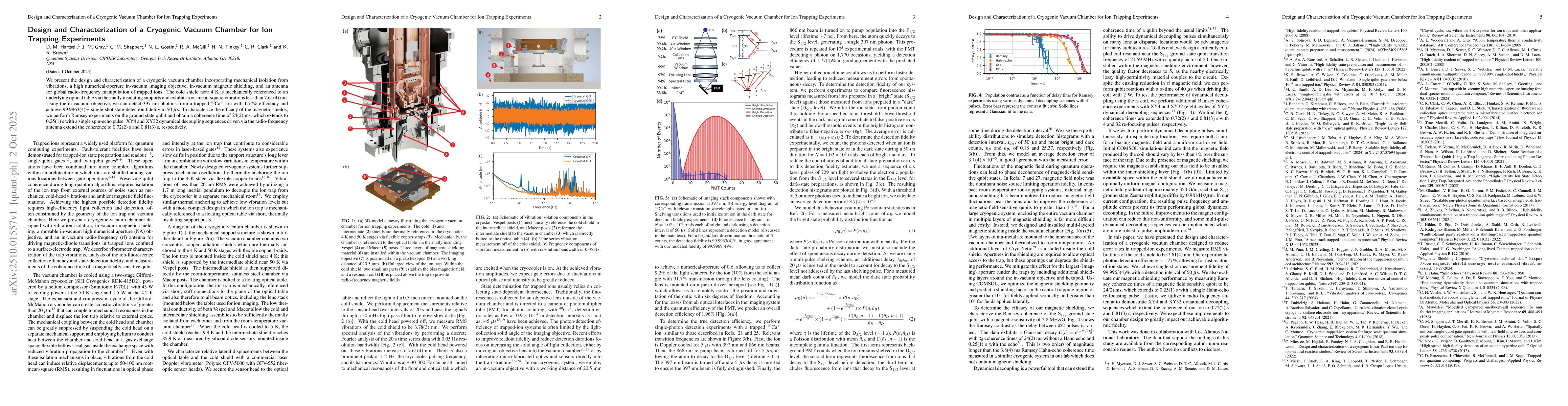The research involved designing and characterizing a cryogenic vacuum chamber for ion trapping, integrating advanced optical and RF systems for high-fidelity quantum operations. It included vibration analysis, magnetic shielding, and testing of quantum state readout and control protocols.