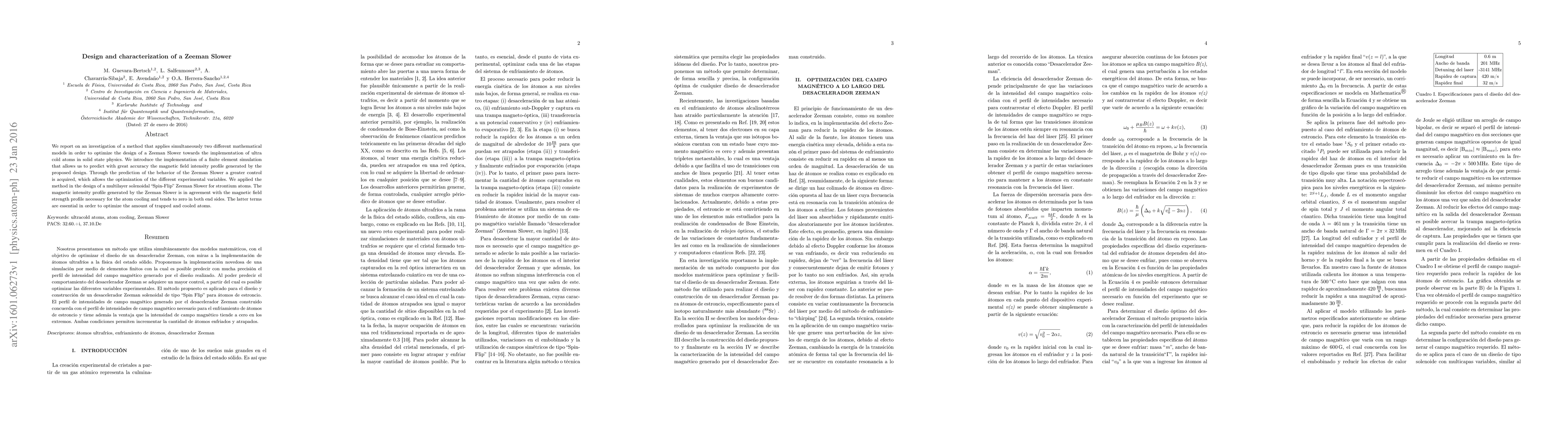 We report on an investigation of a method that applies simultaneously two different mathematical models in order to optimize the design of a Zeeman Slower towards the implementation of ultra cold atoms in solid state physics. We introduce the implementation of a finite element simulation that allows us to predict with great accuracy the magnetic field intensity profile generated by the proposed design. Through the prediction of the behavior of the Zeeman Slower a greater control is acquired, which allows the optimization of the different experimental variables. We applied the method in the design of a multilayer solenoidal "Spin-Flip" Zeeman Slower for strontium atoms. The magnetic intensity profile generated by the Zeeman Slower is in agreement with the magnetic field strength profile necessary for the atom cooling and tends to zero in both end sides. The latter terms are essential in order to optimize the amount of trapped and cooled atoms.