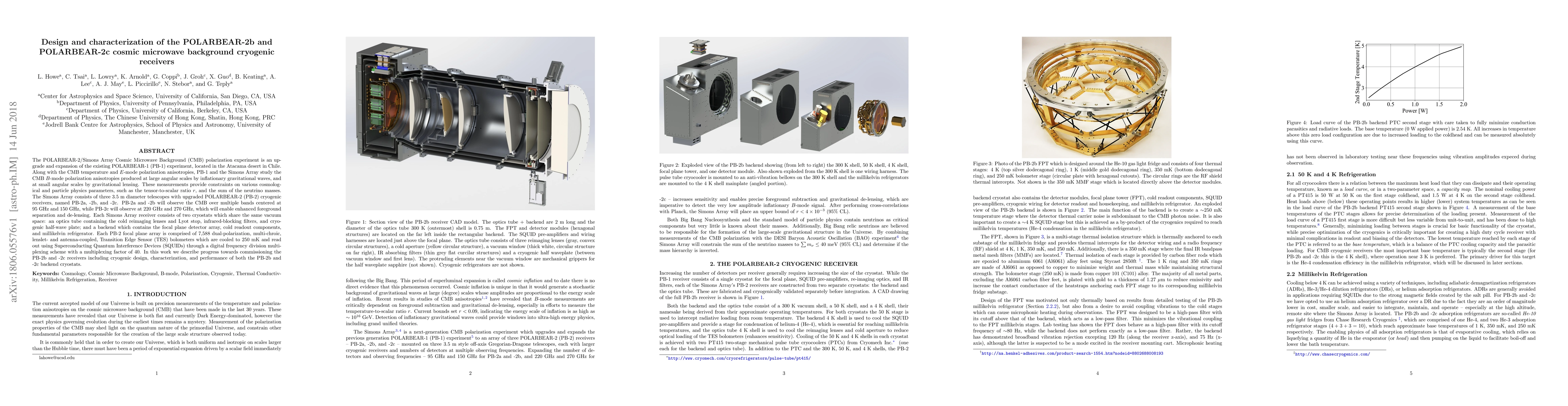 This paper details the design and characterization of the POLARBEAR-2b and POLARBEAR-2c cryogenic receivers for the POLARBEAR-2/Simons Array CMB polarization experiment. The receivers aim to enhance measurements of CMB $B$-mode polarization, providing constraints on cosmological parameters such as the tensor-to-scalar ratio and neutrino masses.