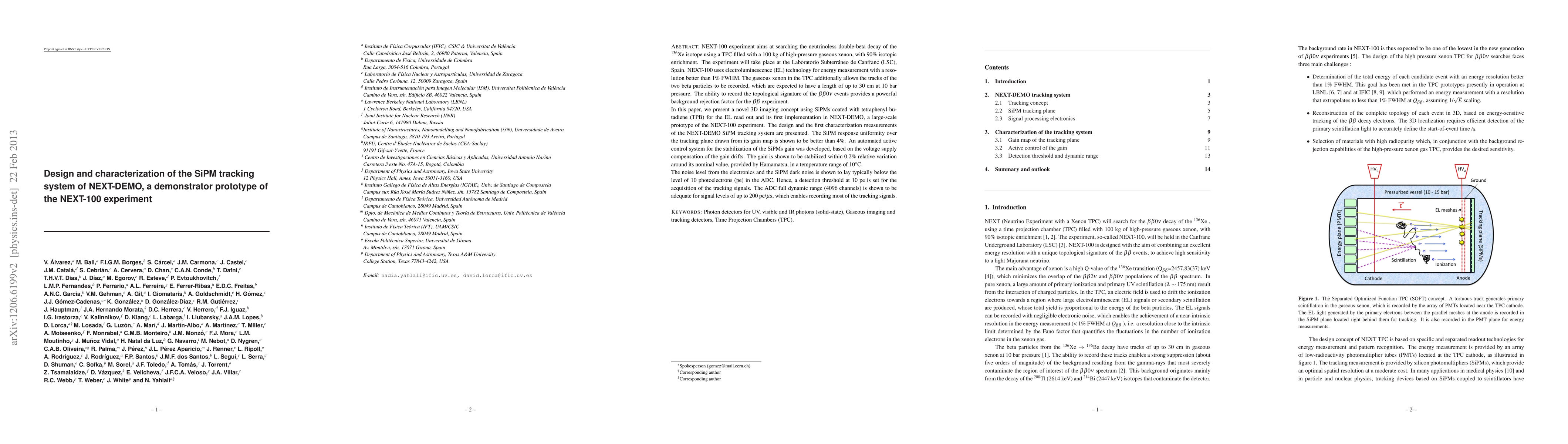 NEXT-100 experiment aims at searching the neutrinoless double-beta decay of the Xe-136 isotope using a TPC filled with a 100 kg of high-pressure gaseous xenon, with 90% isotopic enrichment. The experiment will take place at the Laboratorio Subterr\'aneo de Canfranc (LSC), Spain. NEXT-100 uses electroluminescence (EL) technology for energy measurement with a resolution better than 1% FWHM. The gaseous xenon in the TPC additionally allows the tracks of the two beta particles to be recorded, which are expected to have a length of up to 30 cm at 10 bar pressure. The ability to record the topological signature of the neutrinoless double-beta events provides a powerful background rejection factor for the double-beta experiment. In this paper, we present a novel 3D imaging concept using SiPMs coated with tetraphenyl butadiene (TPB) for the EL read out and its first implementation in NEXT-DEMO, a large-scale prototype of the NEXT-100 experiment. The design and the first characterization measurements of the NEXT-DEMO SiPM tracking system are presented. The SiPM response uniformity over the tracking plane drawn from its gain map is shown to be better than 4%. An automated active control system for the stabilization of the SiPMs gain was developed, based on the voltage supply compensation of the gain drifts. The gain is shown to be stabilized within 0.2% relative variation around its nominal value, provided by Hamamatsu, in a temperature range of 10 degree C. The noise level from the electronics and the SiPM dark noise is shown to lay typically below the level of 10 photoelectrons (pe) in the ADC. Hence, a detection threshold at 10 pe is set for the acquisition of the tracking signals. The ADC full dynamic range (4096 channels) is shown to be adequate for signal levels of up to 200 pe/microsecond, which enables recording most of the tracking signals.