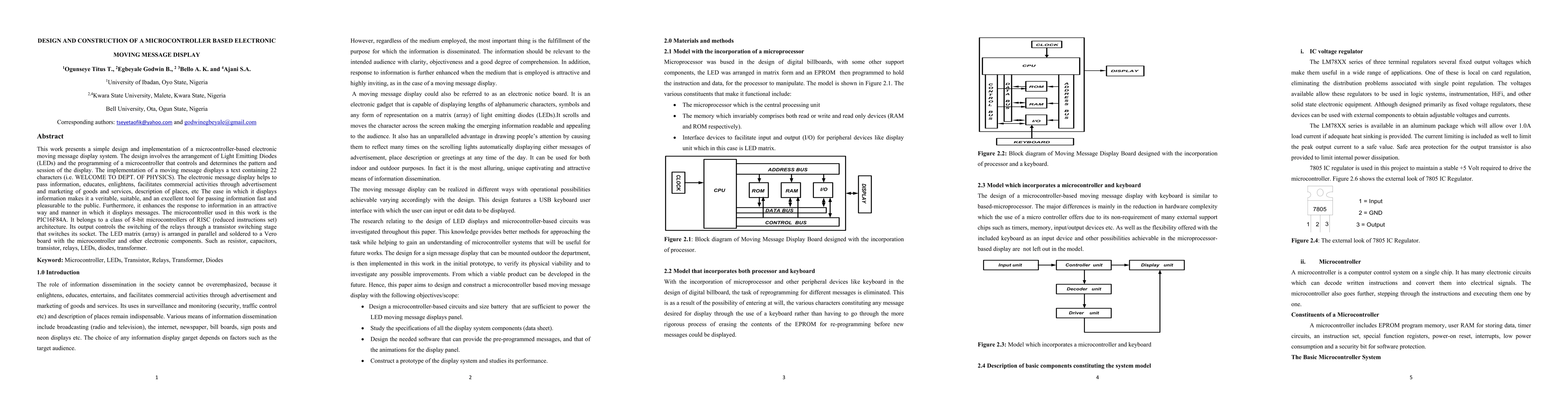 This paper details the design and construction of a microcontroller-based electronic moving message display using LEDs and a PIC16F84A microcontroller. The system effectively displays a 22-character message and serves as an informative and attractive advertising tool.