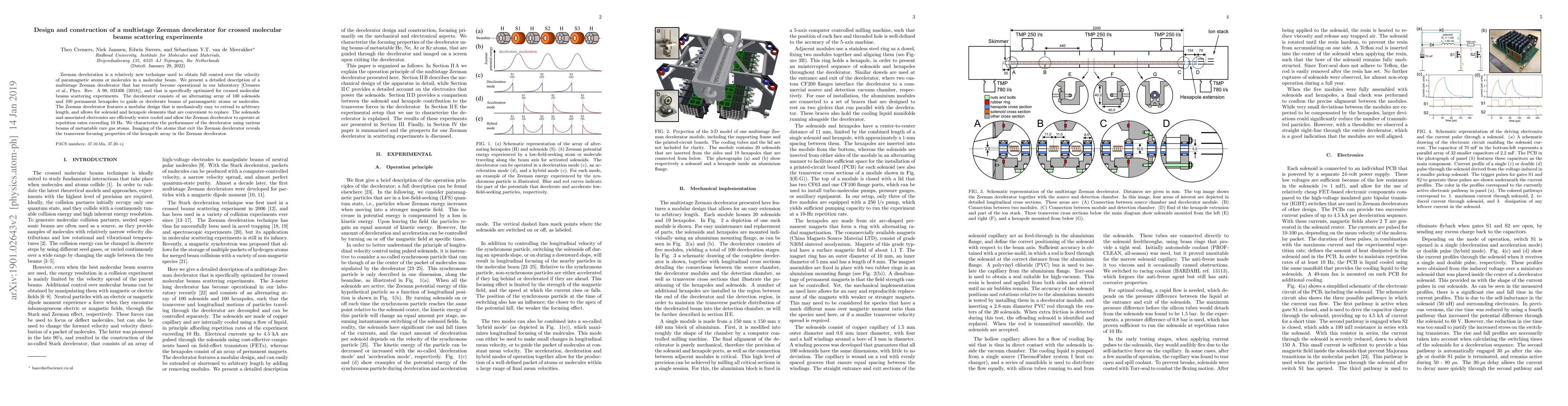 This paper presents a detailed design and construction of a multistage Zeeman decelerator optimized for crossed molecular beams scattering experiments, featuring 100 solenoids and 100 permanent hexapoles for guiding and decelerating paramagnetic atoms or molecules. The modular design allows for easy extension and replacement of components, and the decelerator operates at high repetition rates.