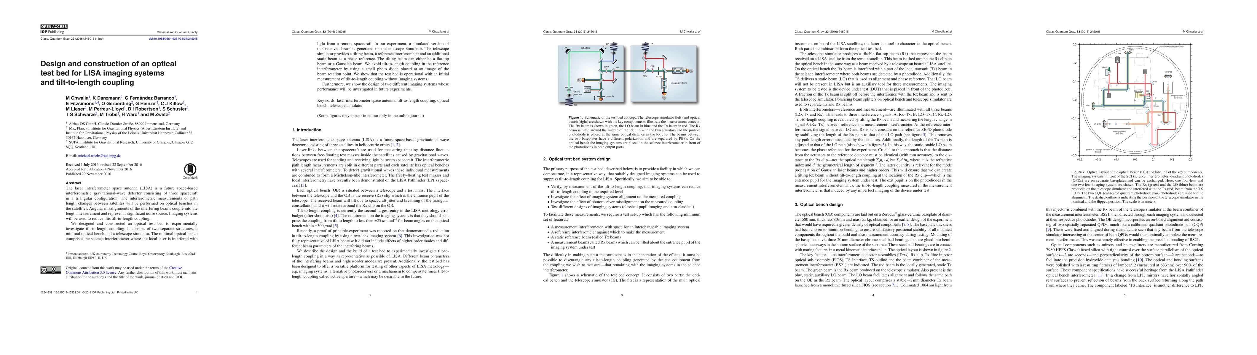 The Laser Interferometer Space Antenna (LISA) is a future space-based interferometric gravitational-wave detector consisting of three spacecraft in a triangular configuration. The interferometric measurements of path length changes between satellites will be performed on optical benches in the satellites. Angular misalignments of the interfering beams couple into the length measurement and represent a significant noise source. Imaging systems will be used to reduce this tilt-to-length coupling. We designed and constructed an optical test bed to experimentally investigate tilt-to-length coupling. It consists of two separate structures, a minimal optical bench and a telescope simulator. The minimal optical bench comprises the science interferometer where the local laser is interfered with light from a remote spacecraft. In our experiment, a simulated version of this received beam is generated on the telescope simulator. The telescope simulator provides a tilting beam, a reference interferometer and an additional static beam as a phase reference. The tilting beam can either be a flat-top beam or a Gaussian beam. We avoid tilt-to-length coupling in the reference interferometer by using a small photo diode placed at an image of the beam rotation point. We show that the test bed is operational with an initial measurement of tilt-to-length coupling without imaging systems. Furthermore, we show the design of two different imaging systems whose performance will be investigated in future experiments.