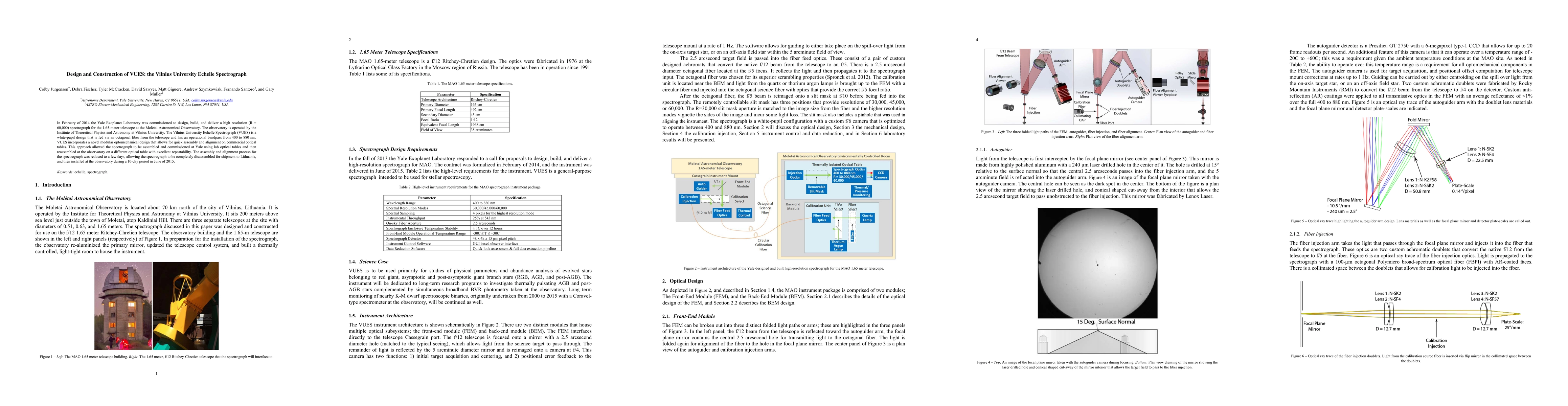 The Yale Exoplanet Laboratory designed and constructed the Vilnius University Echelle Spectrograph (VUES) for the Moletai Astronomical Observatory, featuring a high-resolution (R = 60,000) capability and a modular optomechanical design that facilitated rapid assembly and alignment, enabling efficient installation and operation at the observatory.
