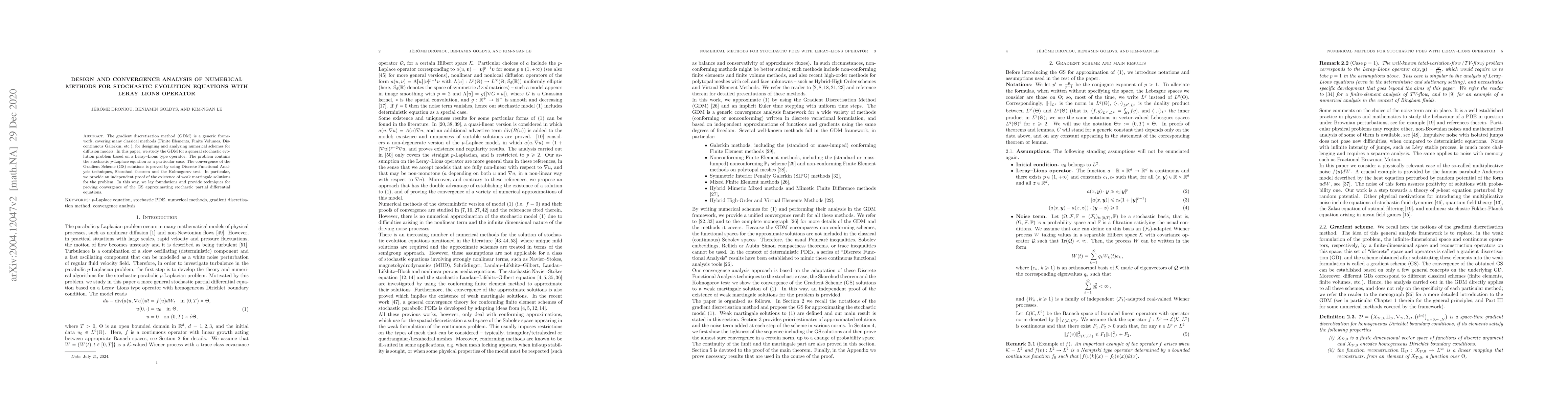 This paper develops a generic framework for numerical methods to solve stochastic evolution equations with Leray-Lions operators, providing an independent proof of weak martingale solutions convergence.