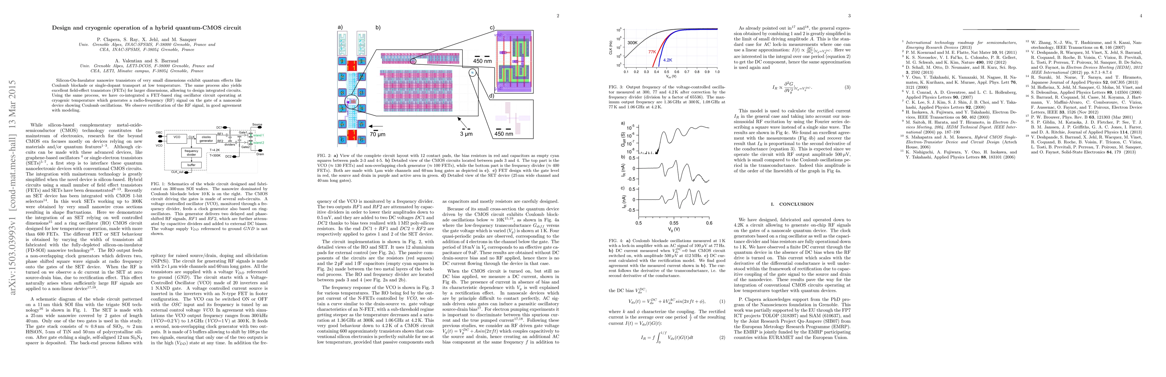 Researchers successfully integrated a hybrid quantum-CMOS circuit that generates a radio-frequency signal at cryogenic temperatures, demonstrating potential for ultra-low power electronics.