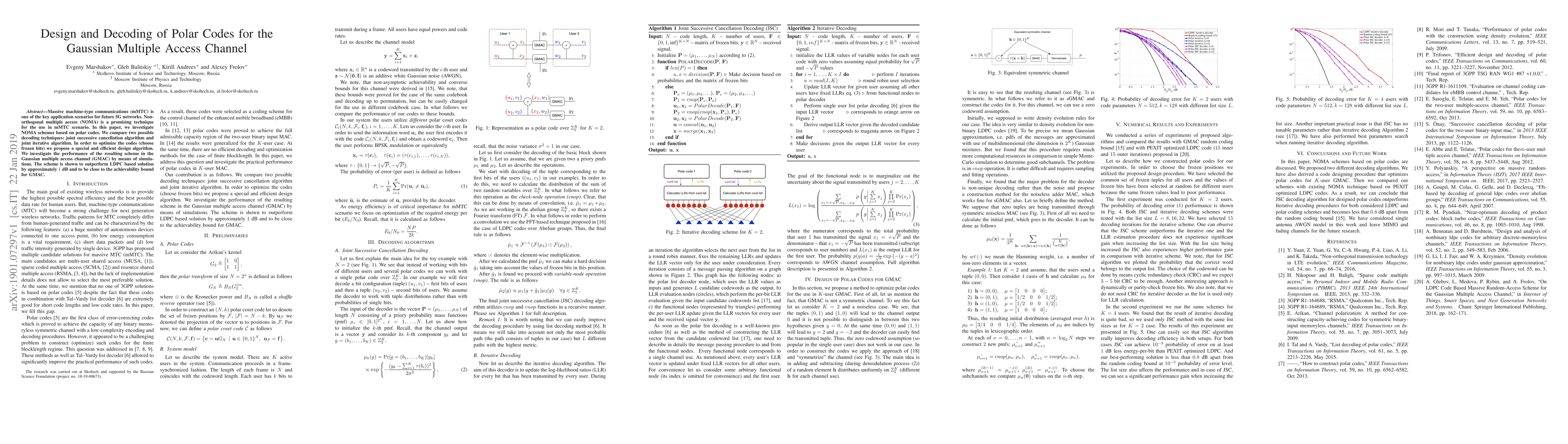 This paper explores NOMA schemes based on polar codes for massive machine-type communications in 5G networks, comparing joint successive cancellation and joint iterative decoding techniques. An efficient design algorithm optimizes polar codes, demonstrating superior performance over LDPC solutions in the Gaussian multiple access channel.