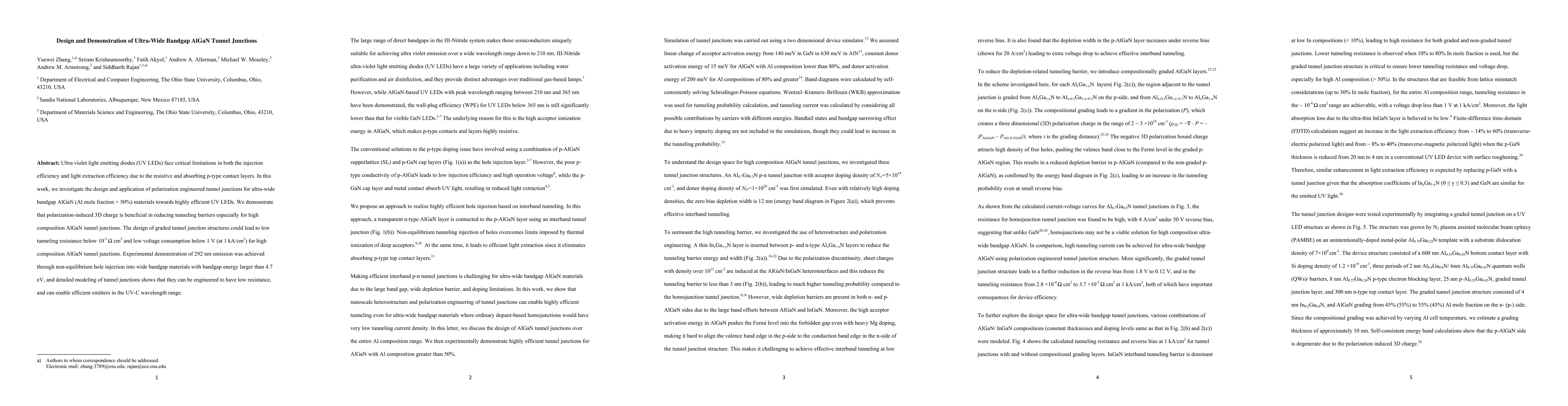 The development of ultra-wide bandgap AlGaN tunnel junctions with low resistance and high efficiency.