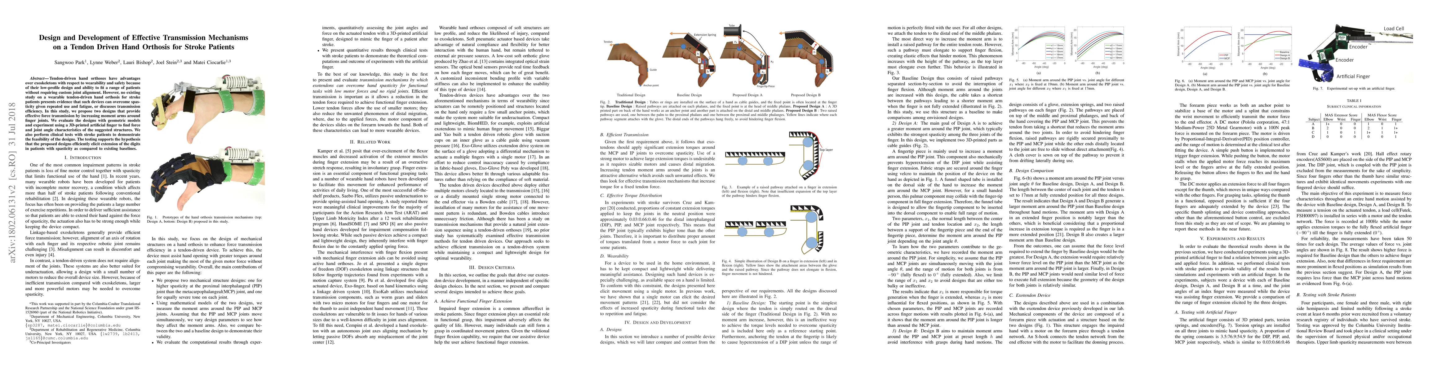 This paper proposes two tendon-driven hand orthosis designs aimed at improving force transmission for stroke patients, evaluating them through geometric models and clinical tests. The study demonstrates that the designs effectively elicit finger extension in patients with spasticity compared to existing solutions.
