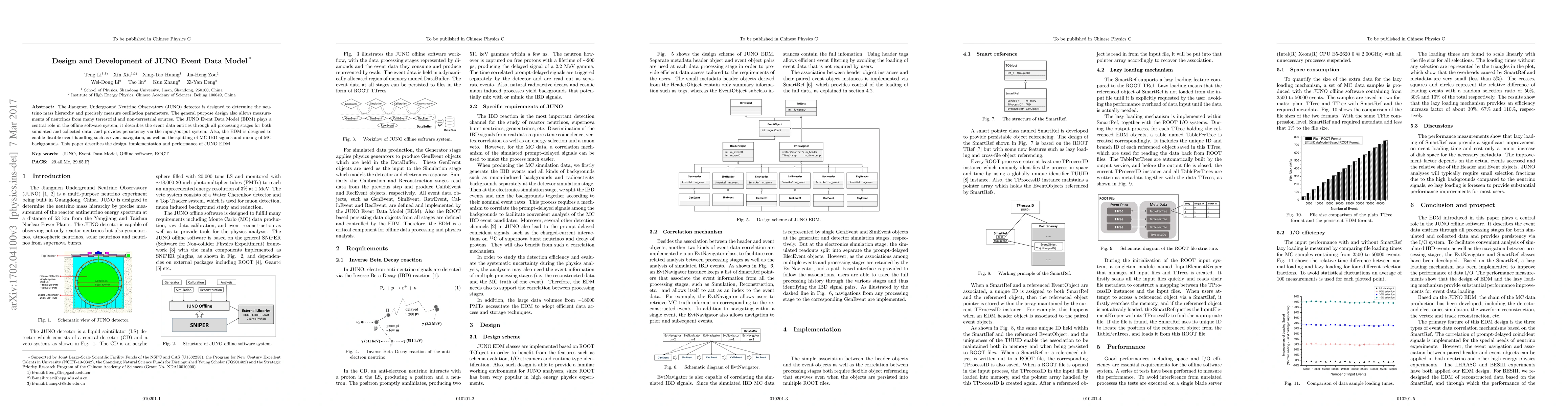 The Jiangmen Underground Neutrino Observatory (JUNO) Event Data Model (EDM) is designed to manage and process event data for neutrino mass hierarchy determination and oscillation parameter measurements. The EDM facilitates flexible event handling and data persistence, supporting both simulated and collected data.