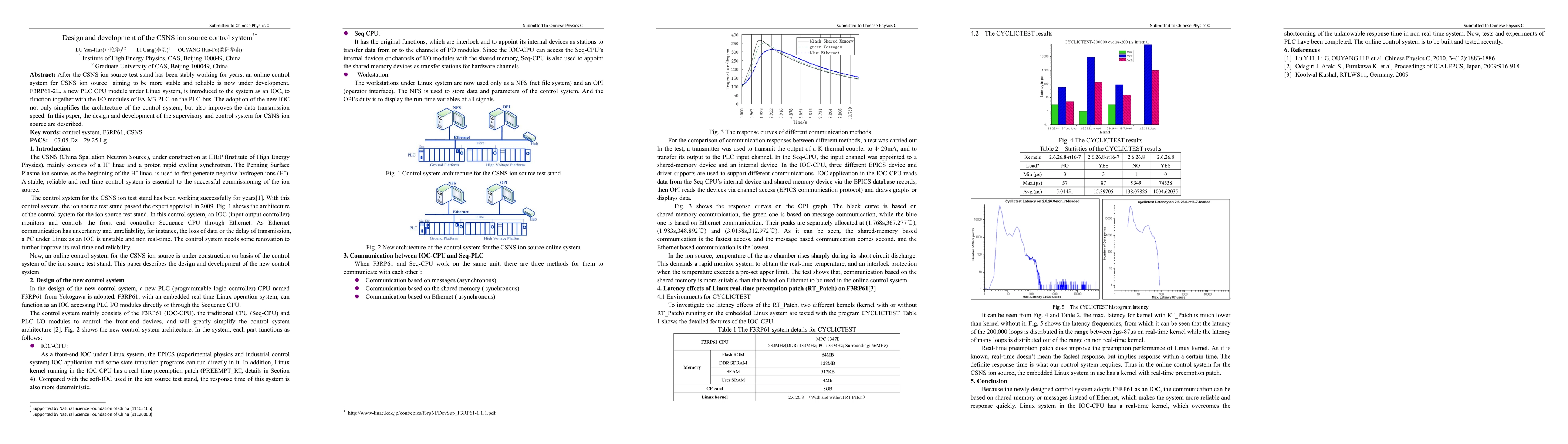 This paper details the design and development of a new online control system for the CSNS ion source, introducing a F3RP61-2L PLC CPU module under Linux to enhance stability and reliability. The new IOC simplifies the system architecture and improves data transmission speed.