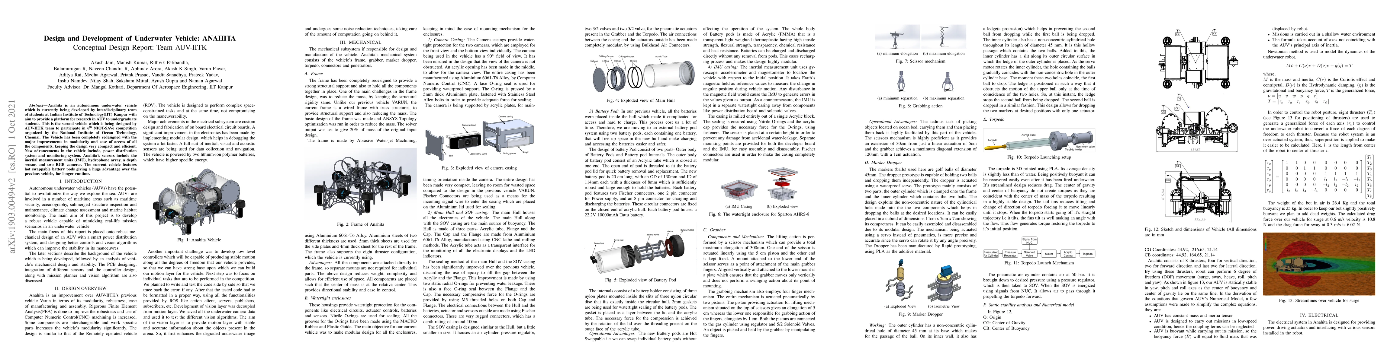 The ANAHITA autonomous underwater vehicle, developed by IIT Kanpur students, features improved modularity, compact design, and advanced power and monitoring systems. It includes IMUs, hydrophones, depth sensors, and RGB cameras, with hot swappable battery pods for extended runtime.
