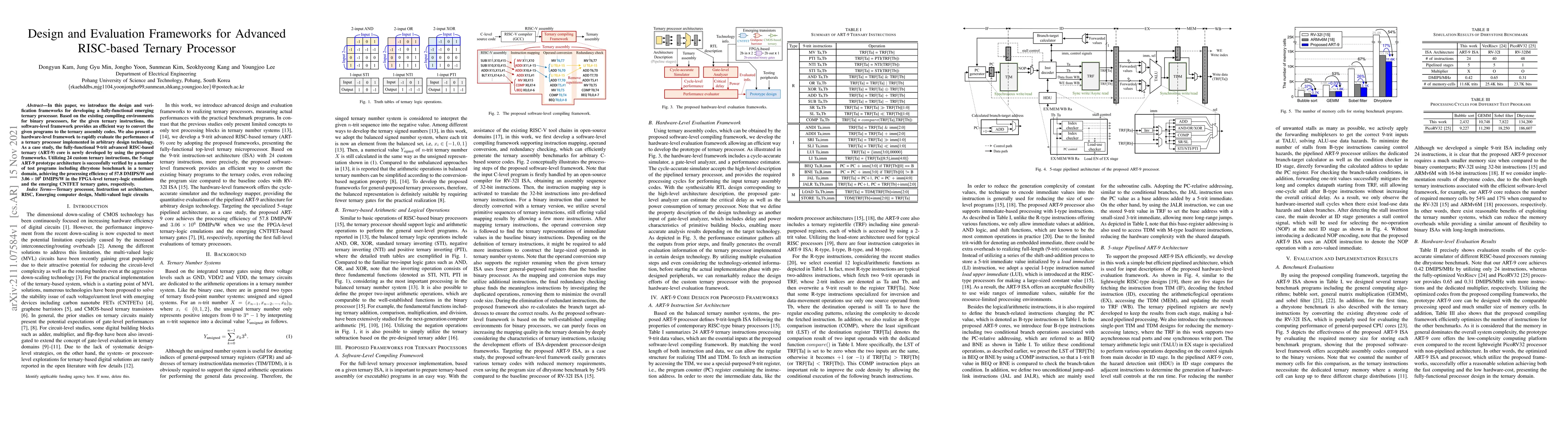 In this paper, we introduce the design and verification frameworks for developing a fully-functional emerging ternary processor. Based on the existing compiling environments for binary processors, for the given ternary instructions, the software-level framework provides an efficient way to convert the given programs to the ternary assembly codes. We also present a hardware-level framework to rapidly evaluate the performance of a ternary processor implemented in arbitrary design technology. As a case study, the fully-functional 9-trit advanced RISC-based ternary (ART-9) core is newly developed by using the proposed frameworks. Utilizing 24 custom ternary instructions, the 5-stage ART-9 prototype architecture is successfully verified by a number of test programs including dhrystone benchmark in a ternary domain, achieving the processing efficiency of 57.8 DMIPS/W and 3.06 x 10^6 DMIPS/W in the FPGA-level ternary-logic emulations and the emerging CNTFET ternary gates, respectively.