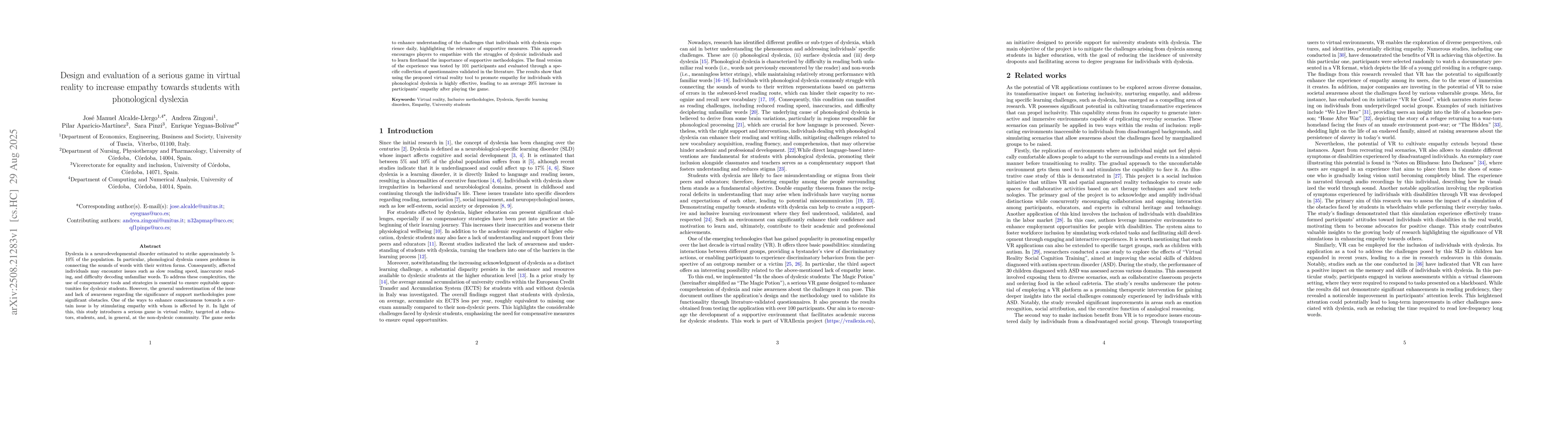 Dyslexia is a neurodevelopmental disorder estimated to strike approximately 5 to 10 per cent of the population. In particular, phonological dyslexia causes problems in connecting the sounds of words with their written forms. Consequently, affected individuals may encounter issues such as slow reading speed, inaccurate reading, and difficulty decoding unfamiliar words. To address these complexities, the use of compensatory tools and strategies is essential to ensure equitable opportunities for dyslexic students. However, the general underestimation of the issue and lack of awareness regarding the significance of support methodologies pose significant obstacles. One of the ways to enhance consciousness towards a certain issue is by stimulating empathy with whom is affected by it. In light of this, this study introduces a serious game in virtual reality, targeted at educators, students, and, in general, at the non-dyslexic community. The game seeks to enhance understanding of the challenges that individuals with dyslexia experience daily, highlighting the relevance of supportive measures. This approach encourages players to empathize with the struggles of dyslexic individuals and to learn firsthand the importance of supportive methodologies. The final version of the experience was tested by 101 participants and evaluated through a specific collection of questionnaires validated in the literature. The results show that using the proposed virtual reality tool to promote empathy for individuals with phonological dyslexia is highly effective, leading to an average 20 per cent increase in participants' empathy after playing the game.