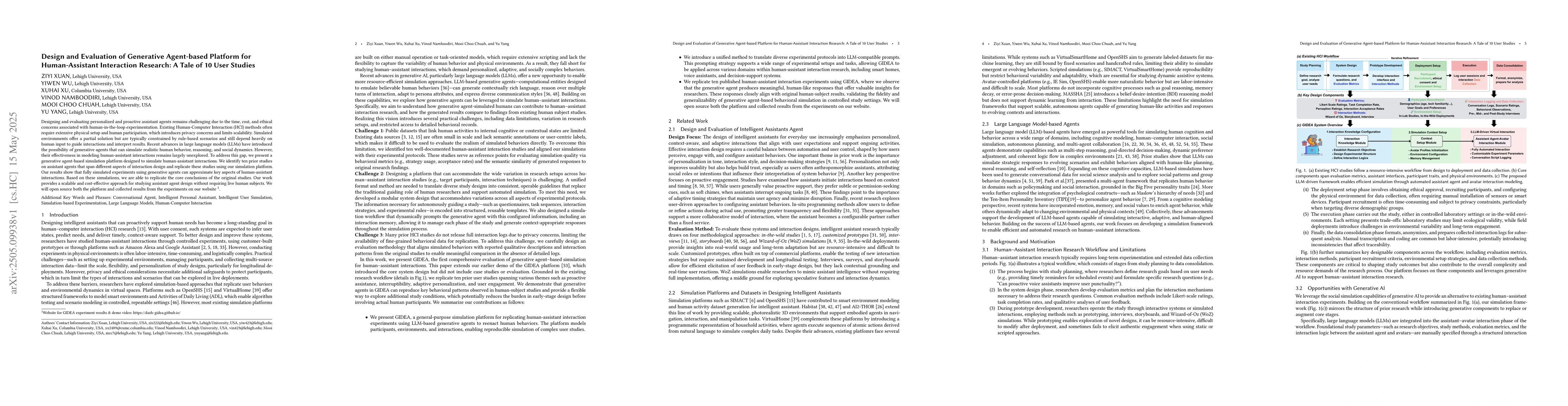 A new platform simulates human-assistant interactions using generative agents, replicating 10 studies on assistant agent design without live human subjects, providing a scalable and cost-effective approach for studying assistant agent design.