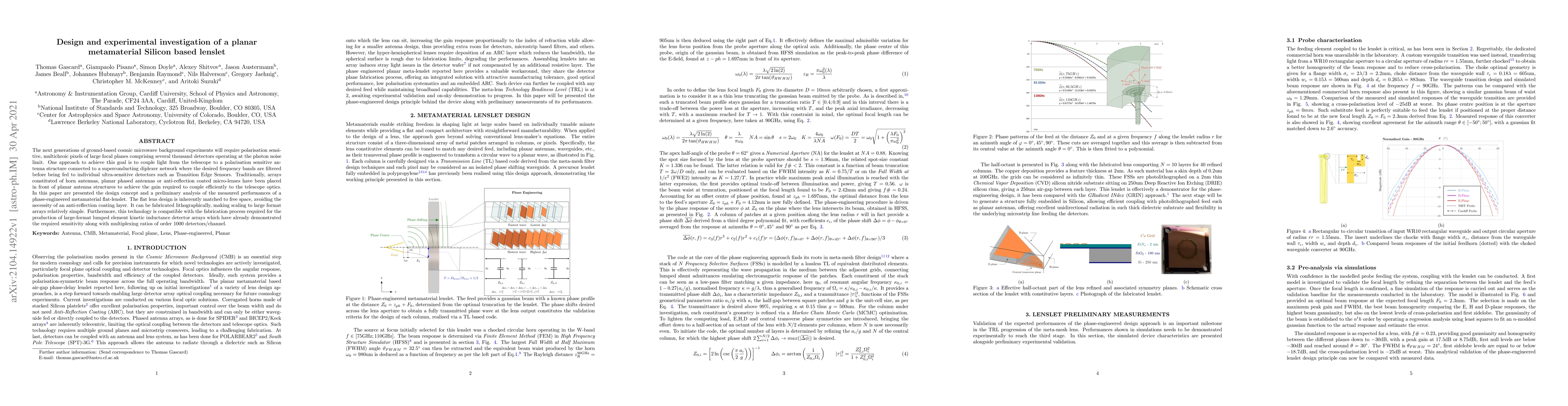 This paper explores the design and experimental investigation of a planar metamaterial silicon-based lenslet for future cosmic microwave background experiments. The proposed lenslet offers a polarization-sensitive, scalable, and efficient solution for coupling light to sensitive detectors without the need for anti-reflection coatings.