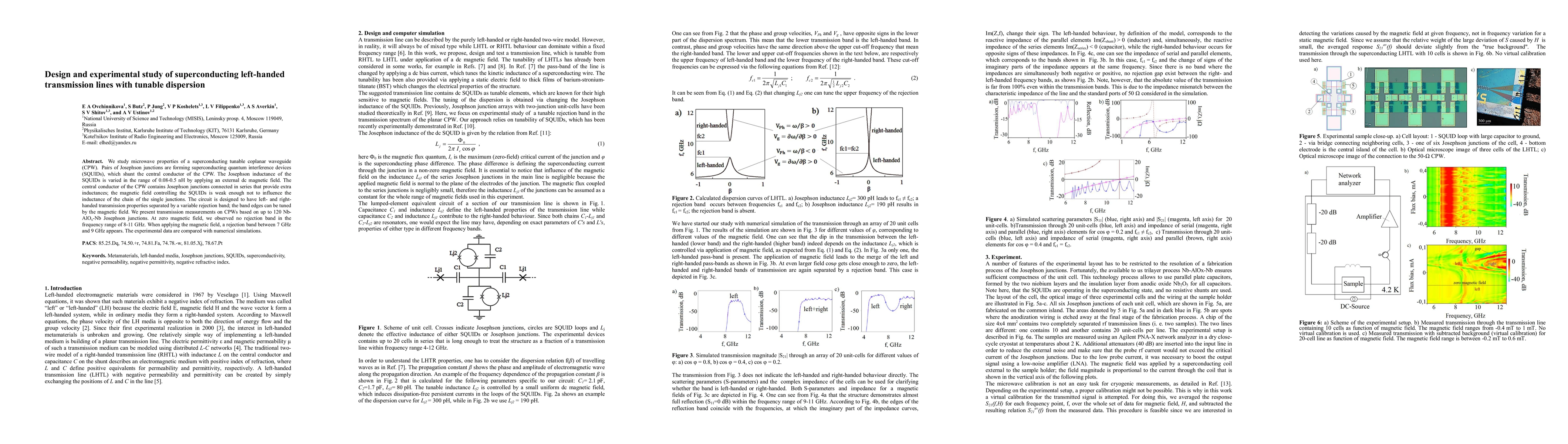 We study microwave properties of a superconducting tunable coplanar waveguide (CPW). Pairs of Josephson junctions are forming superconducting quantum interference devices (SQUIDs), which shunt the central conductor of the CPW. The Josephson inductance of the SQUIDs is varied in the range of 0.08-0.5 nH by applying an external dc magnetic field. The central conductor of the CPW contains Josephson junctions connected in series that provide extra inductances; the magnetic field controlling the SQUIDs is weak enough not to influence the inductance of the chain of the single junctions. The circuit is designed to have left- and right-handed transmission properties separated by a variable rejection band; the band edges can be tuned by the magnetic field. We present transmission measurements on CPWs based on up to 120 Nb-AlOx-Nb Josephson junctions. At zero magnetic field, we observed no rejection band in the frequency range of 8-11 GHz. When applying the magnetic field, a rejection band between 7 GHz and 9 GHz appears. The experimental data are compared with numerical simulations.