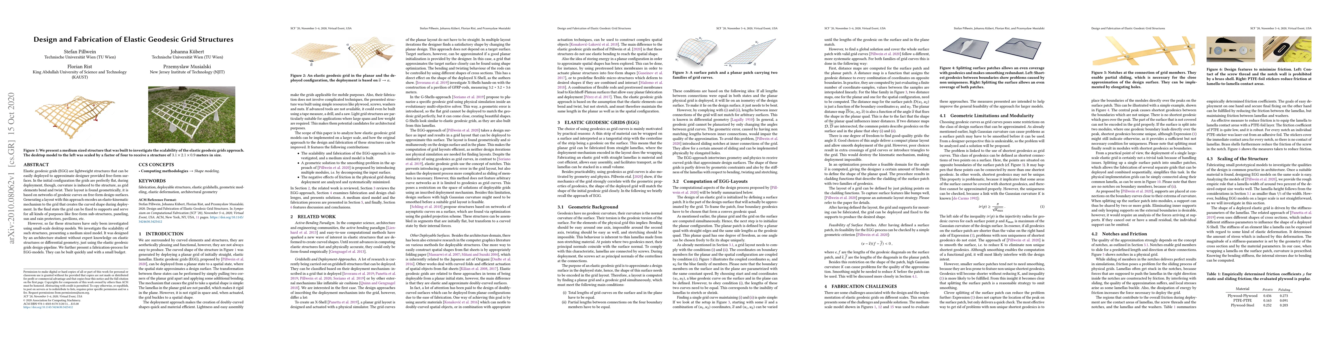Researchers developed elastic geodesic grid structures that can approximate free-form surfaces, presenting a scalable medium-sized model with a low-cost fabrication process.