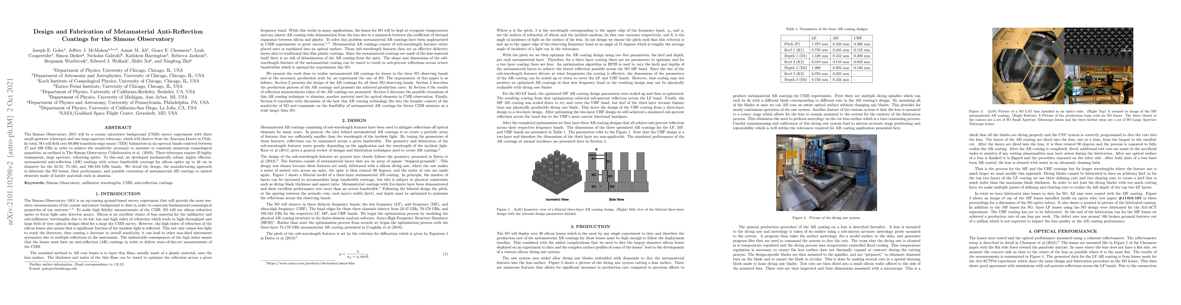 This paper details the design and fabrication of metamaterial anti-reflection coatings for the Simons Observatory's telescopes, focusing on mechanically robust, highly efficient coatings for silicon optics in three GHz bands. The study also explores potential applications of these coatings on harder materials like alumina.
