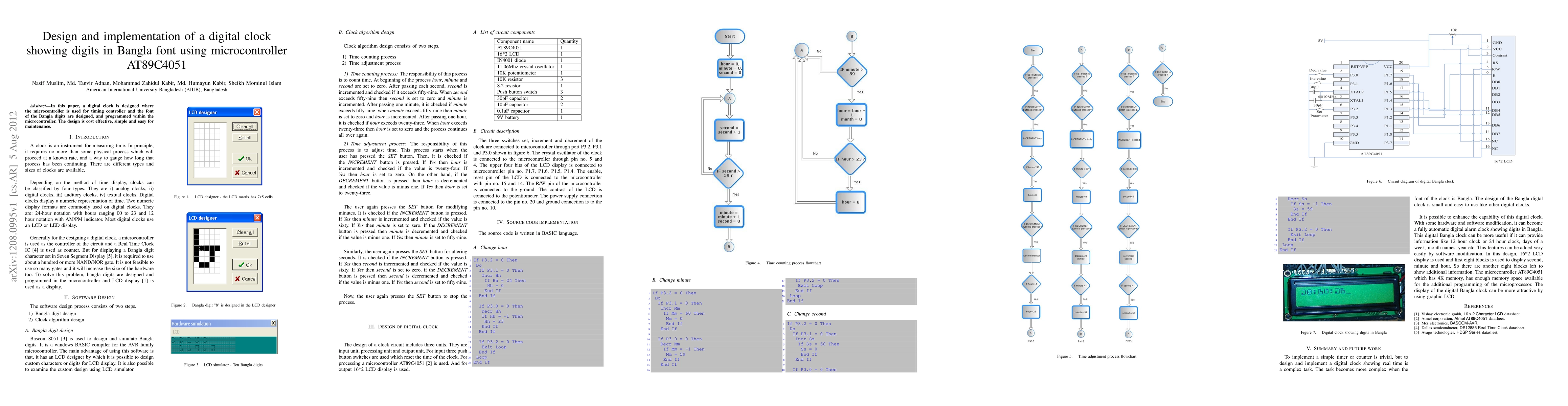 A digital clock with Bangla font display is designed using a microcontroller AT89C4051, offering a cost-effective and easy-to-maintain solution.