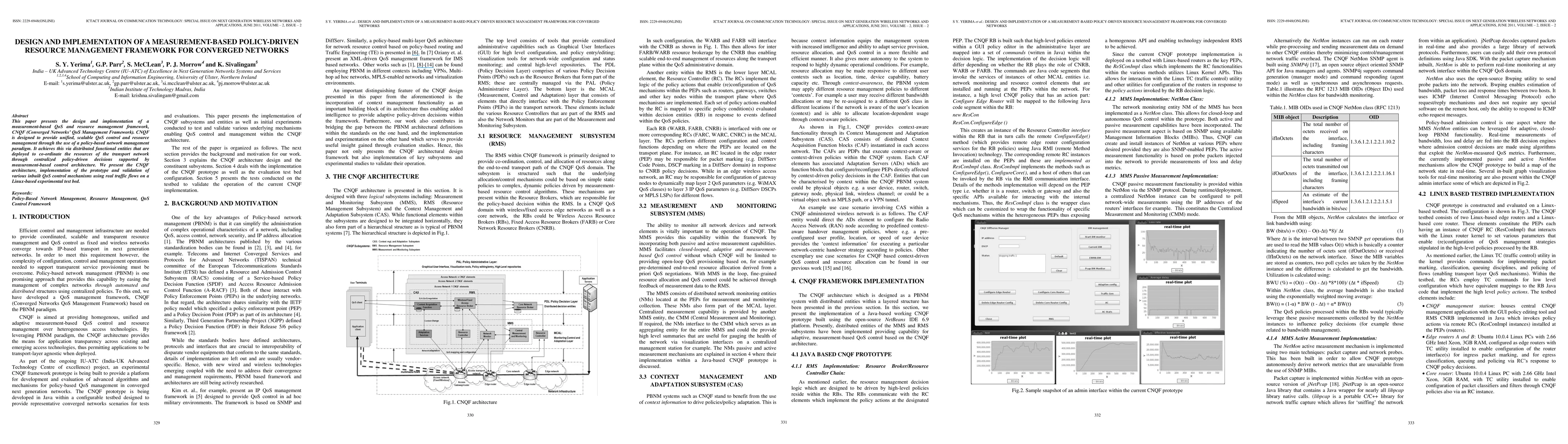 This paper introduces CNQF, a measurement-based QoS and resource management framework for converged networks, utilizing a policy-driven approach for scalable QoS control. The prototype implementation and validation on a Linux-based test bed demonstrate its effectiveness in managing network resources.
